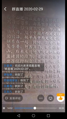 孙中山故居纪念馆是著名的爱国主义教育基地。受疫情的影响,滞留在中山市的王振涛想到采用直播学习的形式,带领大家参观位于中山市翠亨区的孙中山故居纪念馆,进行一堂特殊的爱国主义教育。直播中,王振涛除了参观介绍,还有针对性地设计一些问题,和教师及学生党员展开讨论。他号召大家多学习革命先烈的精神,增强自身的党性修养,积极响应党的号召,争做“敢为人先”的新时代党员。
