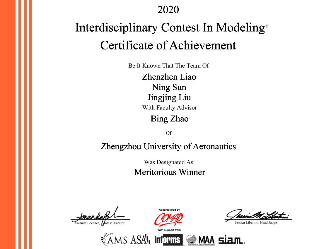 我校在2020年美国大学生数学建模竞赛中喜获佳绩