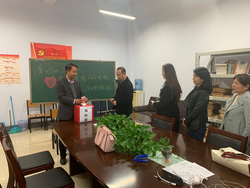 爱心传递祝福 真情呼唤温暖 时间:2020年11月09日 作者:文法学院 编辑:李曙光 点击: 爱心传递祝福,真情呼唤温暖。近日,我校文法学院行政管理教研室全体教师自发为董瑶瑶同学举行了一场爱心捐款活动。 董瑶瑶同学是我校文法学院2017级行政管理专业的学生,原本还有一年时间就要毕业了,却不幸患上了“急性髓系白血病”,不得不告别校园,入院救治。病痛的折磨让这个年轻的生命苦不堪言,巨额的医药费用更是让这个原本就不富裕的家庭束手无策。 行政管理教研室的教师们在得知消息后,都非常关心这件事情,通过各种渠道了解病情,慰问家长,默默伸出援助之手,并自发为董瑶瑶同学举行了爱心捐款活动。病魔无情,人间有爱。行政管理专业所有教师都与她相伴同行,和她一起面对、共同斗争! 我们相信,星点爱心可以汇聚成点燃希望的熊熊烈火,让我们一同祝愿董瑶瑶同学早日康复,重返校园! 2020年11月09日 资讯快报 上一条:机关党委召开党员大会选举增补机关党委委员 下一条:我校教师作为课题负责人参与项目获国家重点研发计划课题立项 【关闭】
