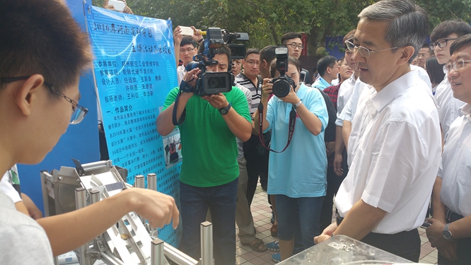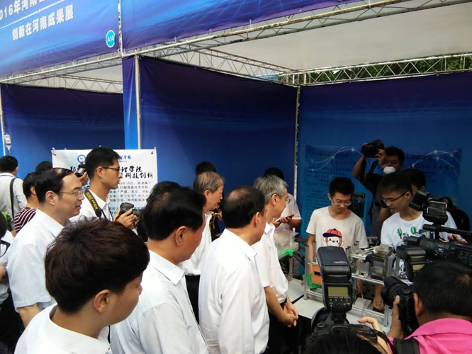 9月18日,2016年河南省全国科普日活动在郑州科技馆隆重举行,省委副书记邓凯、副省长徐济超、省人大常委会副主任蒋笃运等领导视察我校参展项目,并给予高度评价。