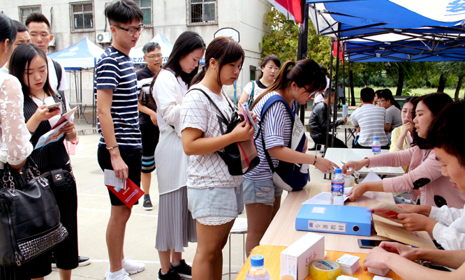 为迎接新生的到来,学校在火车站设有新生接站点,安排志愿者为新生提供服务,并就新生报到流程进行详细介绍。报到现场秩序井然,三个招生学院和财务处、保卫处、招生就业处、后勤服务中心等职能部门联合办公;教职员工帮助新生办理入学手续,解答学生和家长提出的各种问题;志愿者们也为新生搬运行李、指引道路,帮助新生熟悉校内环境。另外,学校为新生开辟了“绿色通道”,确保经济困难的学生能够顺利入学。