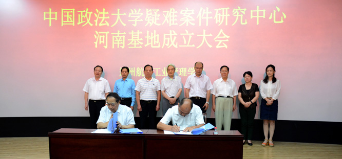 会上,中国政法大学疑难案件研究中心主任郭成伟、法学院院长邢培泉签订《中国政法大学疑难案件研究中心河南基地合作协议书》并为河南基地揭牌。