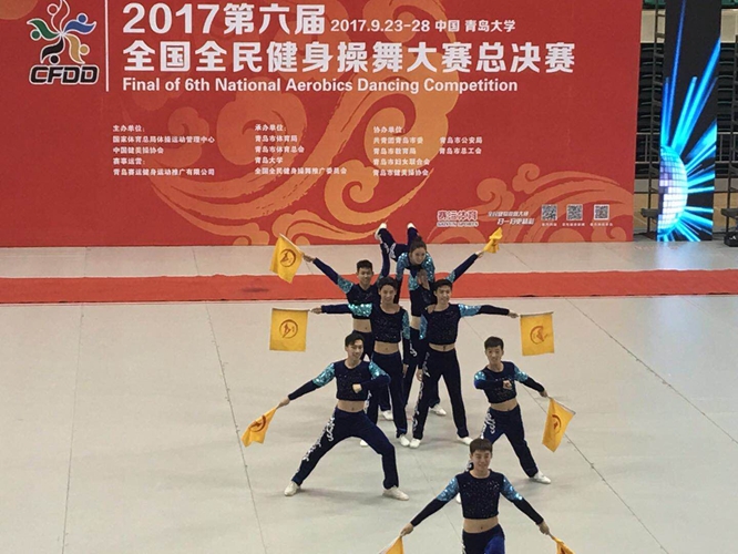 全国全民健身操舞大赛总决赛 我校首次参赛即夺冠 时间:2017年09月29日 作者: 编辑: 点击: 2017年第六届全国全民健身操舞大赛总决赛于9月23-28日在青岛隆重举行。我校健美操队不畏强手,顽强拼搏,一举夺得“普通院校组有氧健身操自选动作”项目的冠军。 除此以外,我校健美操队在体育教学部主任王广明和副主任王焱源的带领下,还获得“有氧健身操轻器械自选动作”项目第二名,以及“时尚健身舞蹈FIT DANCE”和传统“有氧健身操Hi-Low”两个项目的二等奖。主教练吴歌、李琴凤被评为“年度优秀教练员”,同时被授予“最佳编排奖”。 本次大赛由国家体育总局体操运动管理中心、中国健美操协会主办,是目前我国健美操赛事中规模最大、运动员年龄跨度最广的赛事。(体育教学部图文) 2017年09月29日 新闻头条 上一条:党委书记付强深入全校各单位调研 下一条:省委高校工委督查组来校督导以案促改工作 【关闭】