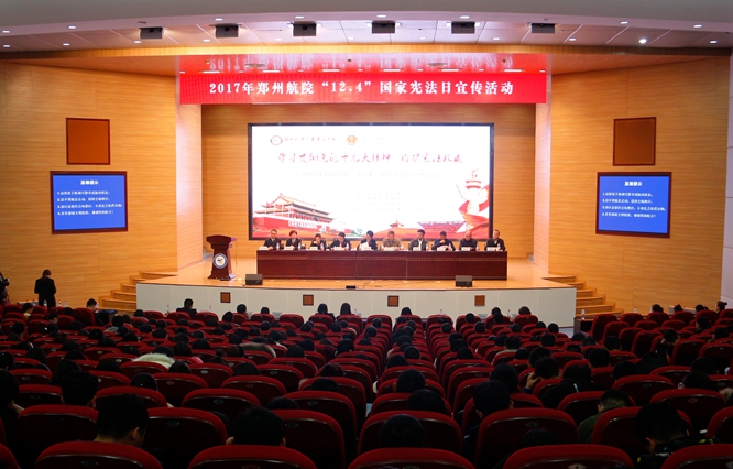 今年12月4日是我国第四个国家宪法日。当日,郑州航院“12·4”国家宪法日宣传活动在我校图书馆第一报告厅举行。副院长杨培出席并致辞,郑州市中级人民法院副院长、党组成员刘玉华及我校相关职能部门和法学院负责人参加。活动启动仪式由学生处处长李广锋主持。