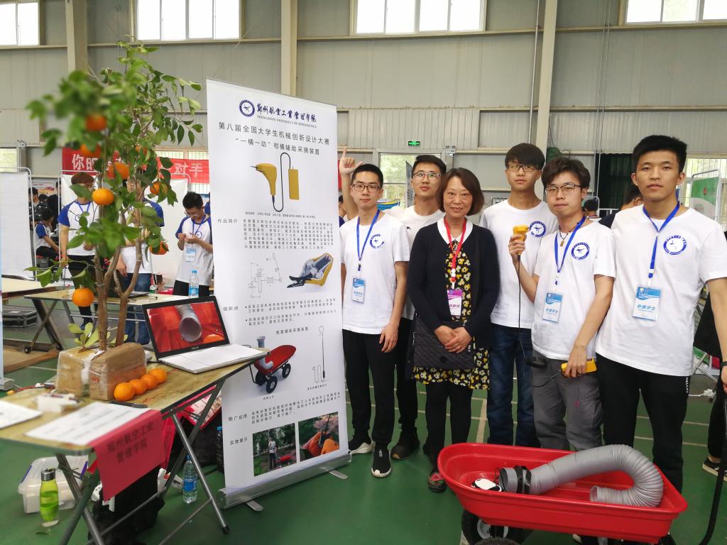 其中,由王利红、李法新老师指导,学生邬明良、杨一鸣、高宇杭、张明权、王伟权提交的《“一橘一动”柑橘辅助采摘装置》获一等奖;由崔艳梅、张海军老师指导,学生余洛生、高宇杭、张鹏宇、雷绍俊提交的《滑移式无避让双层停车位装置》获三等奖。