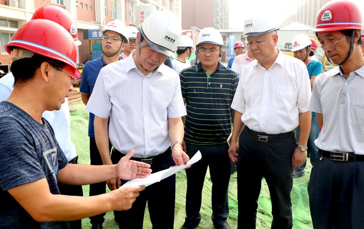 在教学实验楼施工现场,工程施工队正抓紧施工。付强听取施工单位有关建设情况的汇报,针对影响项目进度的施工人员不足、雨季延误工期等问题,要求学校相关部门加强统筹规划,协调解决好存在问题。同时,施工单位要增加施工人员、机械设备,加快工程进度。