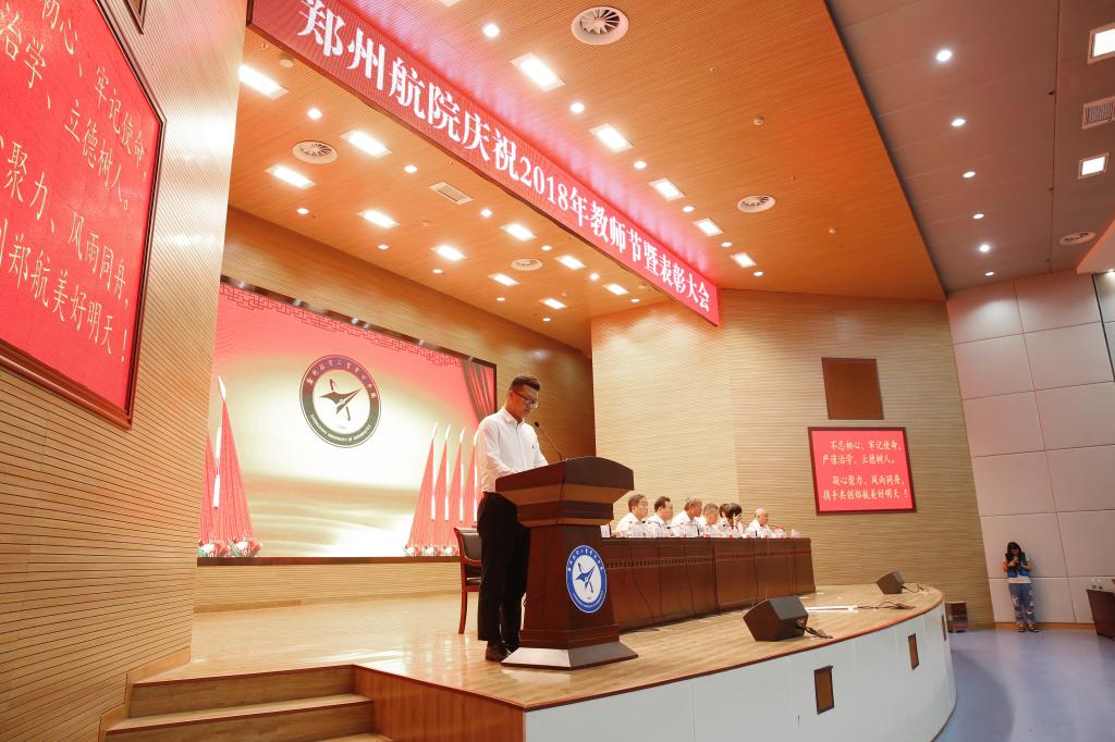 党委副书记石培哲,副院长张锐、赵健、李广慧分别宣读“郑州航院师德标兵和师德先进个人”“校级优秀教师优秀教育工作者”“教学质量奖”“教学管理先进个人”“青年教师讲课比赛获奖教师和先进单位”“青年教师讲课比赛‘伯乐奖’”“优秀辅导员、优秀班主任”“科研工作先进单位、先进个人和科研管理工作先进个人”的表彰决定,共有300余个集体和个人获得表彰。