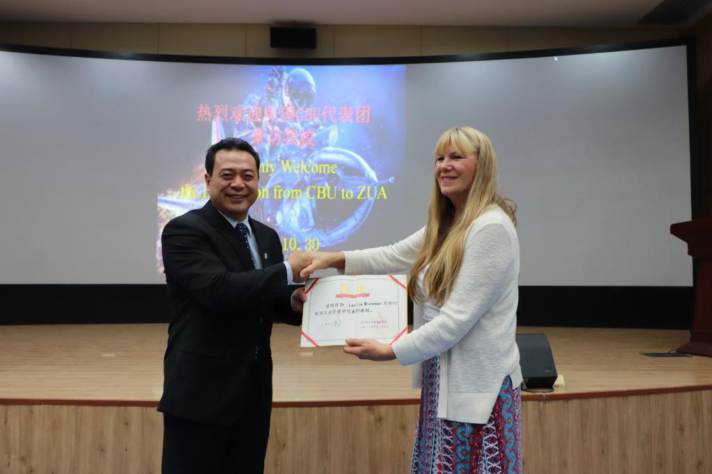 10月30日,美国加州浸会大学(简称CBU)副校长拉里·里莱曼(Dr. Larry Linamen)率团访问我校,随团来访的该校航空航天领域专家、航天员莱斯莉•威克曼(Dr. Leslie Wickman)教授为我校师生作《走向太空的个人感受》的主题报告。