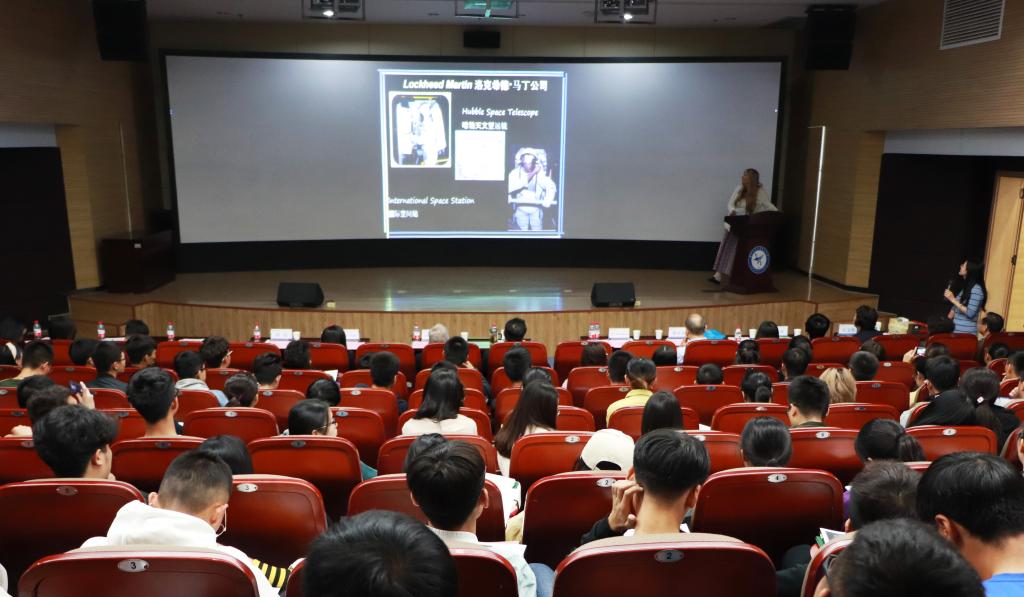 莱斯莉•威克曼在《走向太空的个人感受》主题报告中,以其本人不同寻常的成长经历开始,与现场听众分享空间飞行中的人体工程学、航天环境复杂因素给航天员带来生理的心理问题及解决对策等;同时,她着重介绍了在CBU成功开展的高海拔气球项目,以通俗易懂的方式向听众讲述了复杂、深奥的航天项目试验,为现场师生带来了一场有关航天宇航专题的饕餮盛宴。