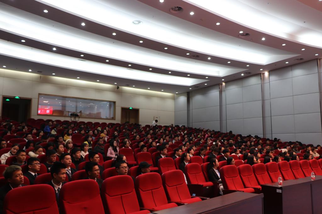 杨玮斌作题为《构建对外话语体系 讲好河南故事》专题报告。他从服务“一带一路”出发,引出如何讲好河南故事、宣传好河南。杨玮斌鼓励青年学生关注国际形势,关注外交发展动态,表达了对新时代新青年的企盼。