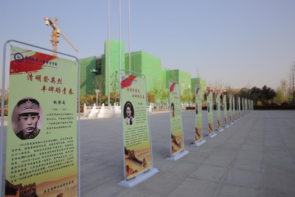 升旗仪式现场,24位英雄先烈展览吸引了不少师生。