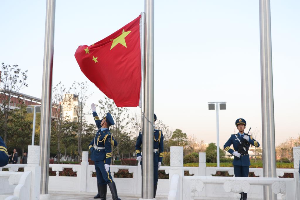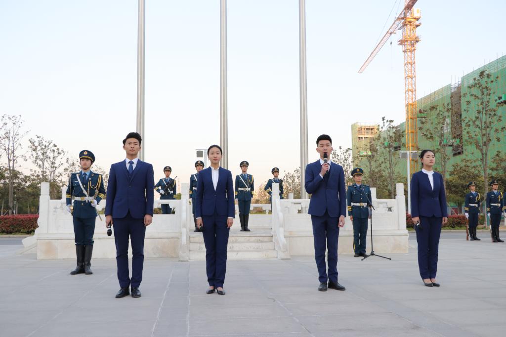 国旗下,国旗班班长邵翔带领师生庄严宣誓:“继承先烈遗志,厚植爱国情怀,矢志艰苦奋斗,锤炼高尚品格,练就过硬本领,勇于创新创造,争做社会主义建设者和接班人,为中华民族伟大复兴而不懈奋斗。”