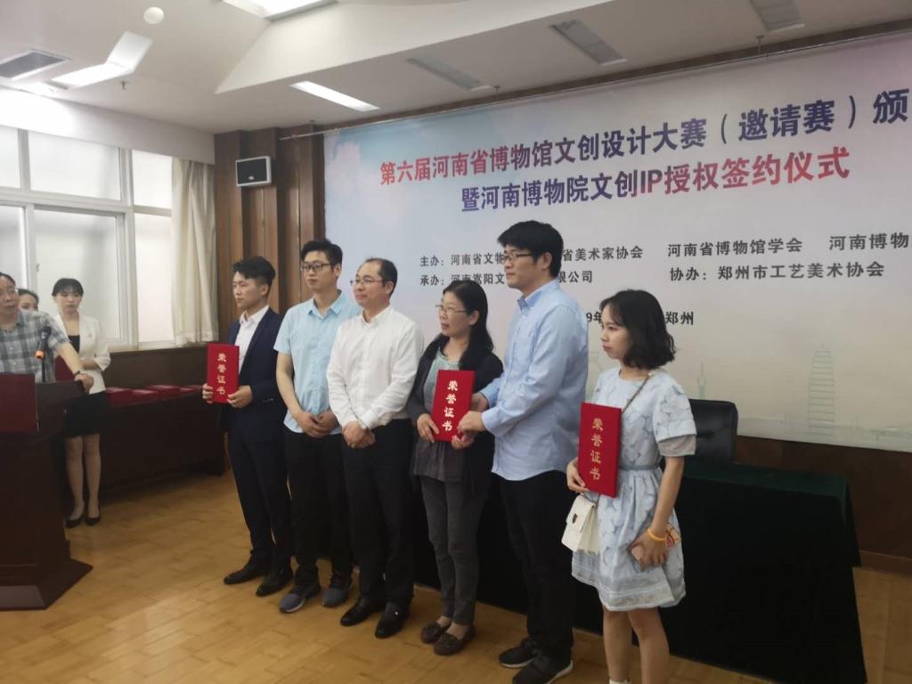 5月18日是世界博物馆日,第六届河南省博物馆文创设计大赛颁奖典礼暨IP授权签约仪式在河南博物院举行。我校艺术设计学院产品设计专业李嘉鸣等同学的实物作品《鸮尊U盘钥匙扣》获大赛二等奖,另有四套作品获优秀奖。