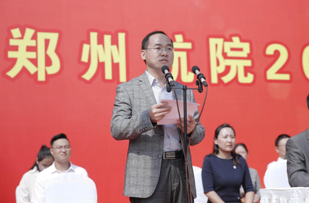 典礼在庄严雄壮的国歌声中拉开帷幕。院长李勇代表学校对2019级全体新生的到来表示热烈欢迎,他以《做新时代接续奋斗的郑航人》为题发表讲话。