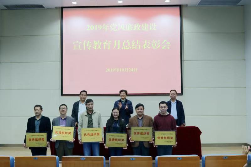 会议宣读了2019年廉政文化作品征集活动评选结果,并为机关党委、图书馆、管理工程学院、智能工程学院、艺术设计学院、文法学院等优秀组织奖获奖单位颁奖。