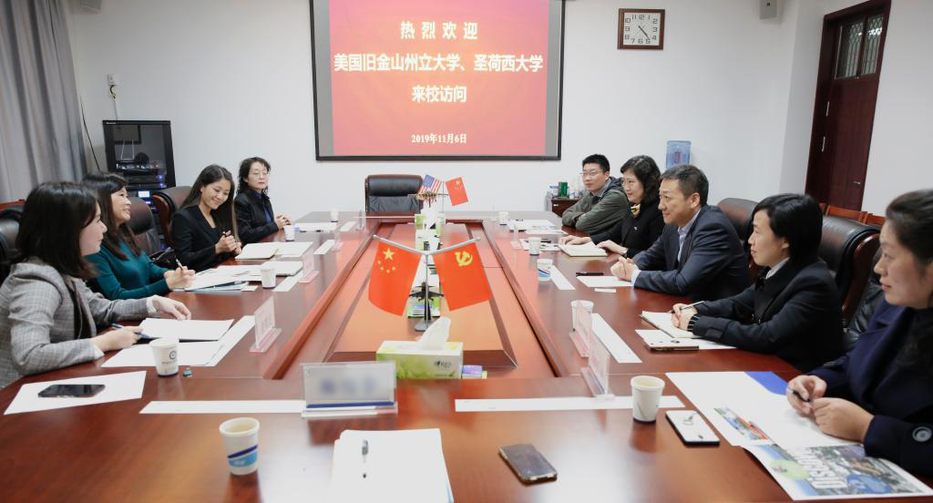 赵健代表学校对访问团一行的到来表示欢迎,希望双方找到合作切入点,开展项目务实合作。杰派克和辛奇都分别介绍了旧金山州立大学和圣荷西州立大学的总体情况,希望与我校合作开展与心理学相关学科的本硕连读课程,并对学生的申请资格、入学标准、就业前景等方面作了详细介绍。双方还就课程合作模式,以及学生交流和科研合作的可能性进行深入交流和探讨。