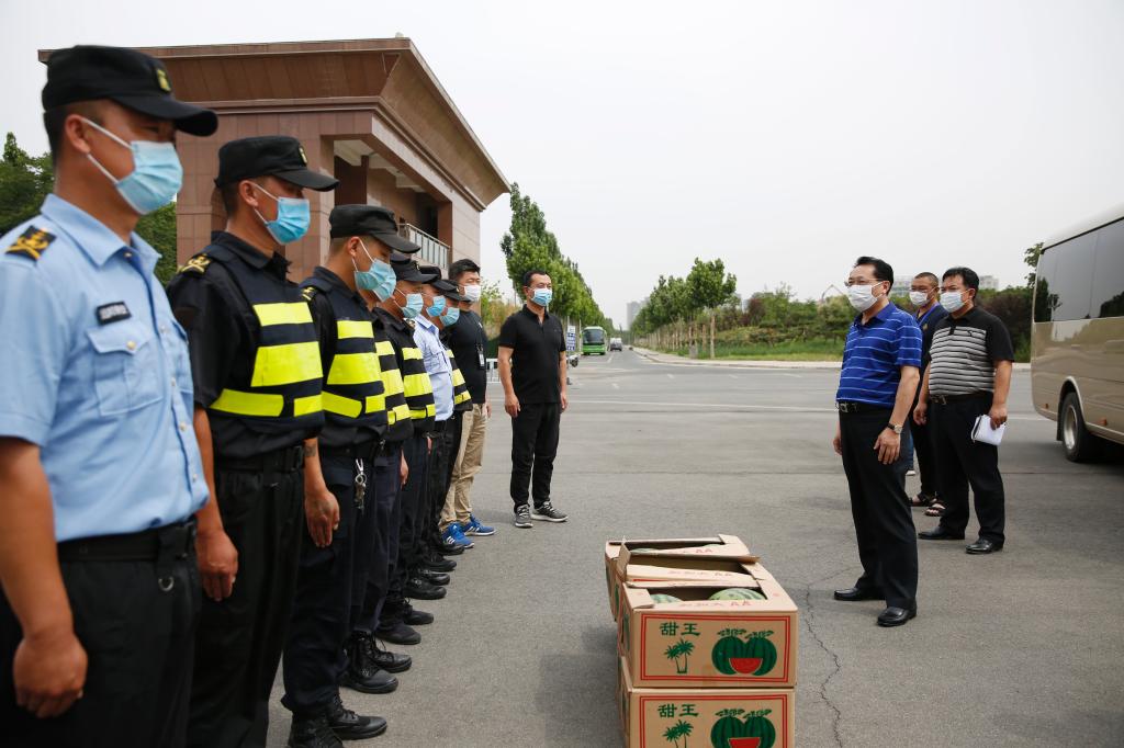 6月5日,副院长王继东及相关部门负责人看望慰问坚守在返校复学工作一线岗位的安保服务人员、网格管理人员等,给他们送去夏日“清凉”。