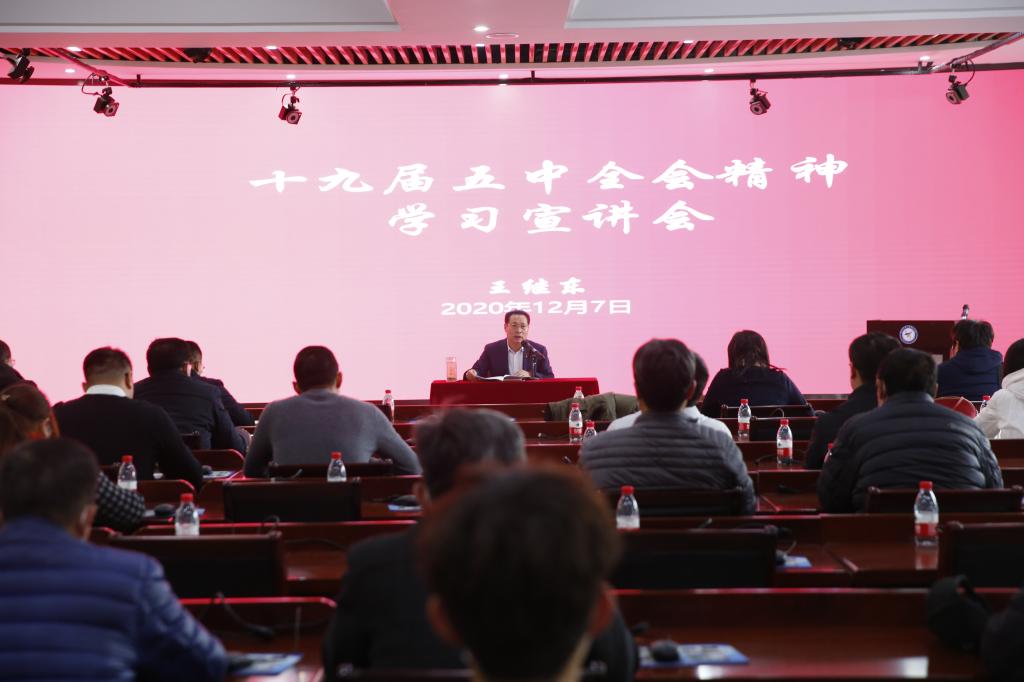 12月8日,校党委书记付强在图书馆第一报告厅宣讲党的十九届五中全会精神,商学院和信息管理学院师生200余人参加宣讲报告会。