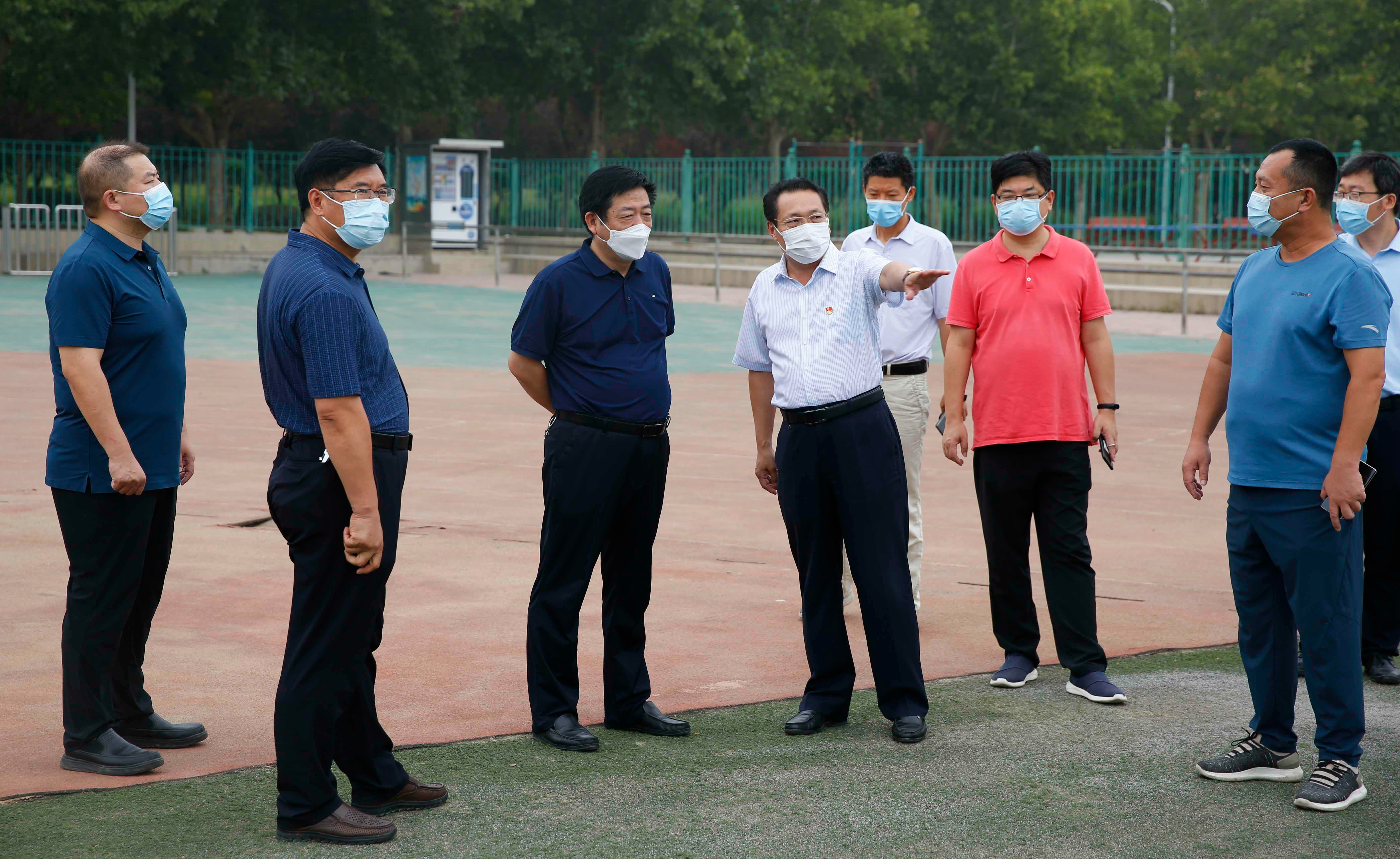 张水潮现场察看了龙子湖校区西南操场、校医院、学生公寓、校园超市、留学生公寓、在建体育馆,仔细听取学校关于疫情防控和灾后重建工作的汇报,详细了解师生信息摸排、重点区域和重点人员的管理、防疫物资储备、秋季开学方案和应急预案制定及灾后恢复重建工程进展情况。