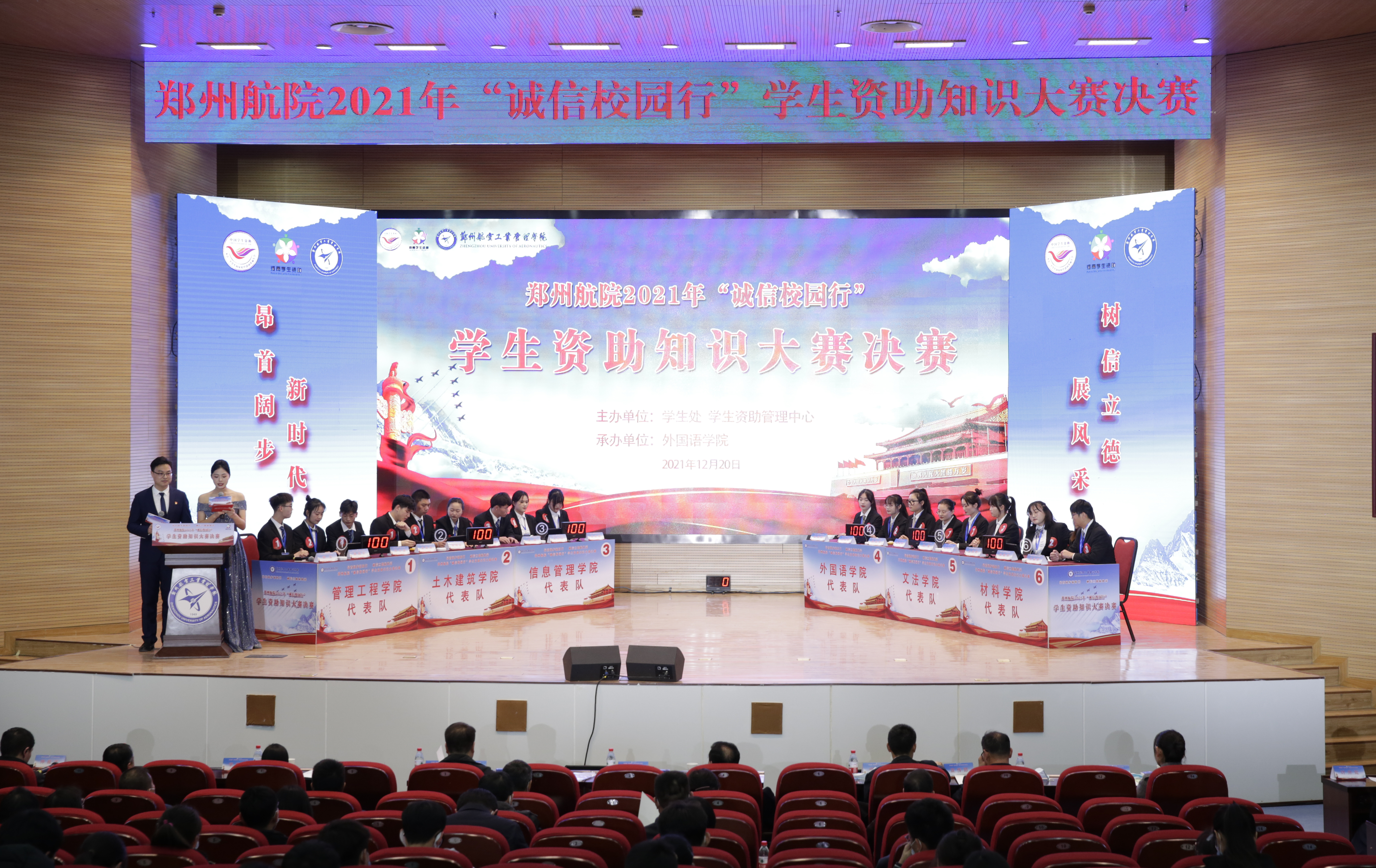 12月20日,郑州航院2021年“诚信校园行”学生资助知识大赛决赛举行,副院长王继东、河南省学生资助管理中心相关负责人出席活动现场。