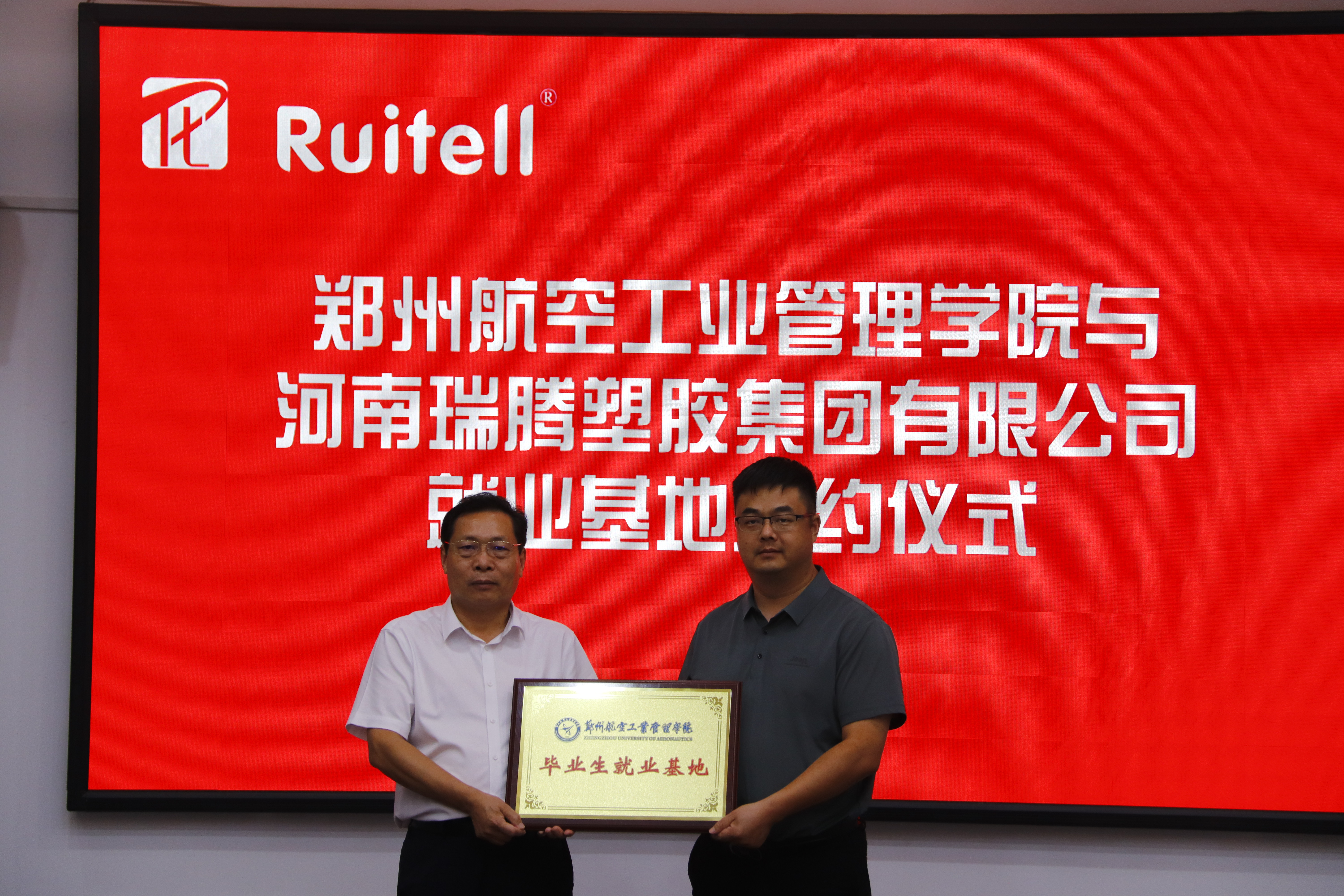 7月15日,副校长王继东一行6人前往河南瑞腾塑胶集团有限公司开展访企拓岗实地走访活动,双方现场签署郑州航院毕业生就业基地建设协议并举行授牌仪式。