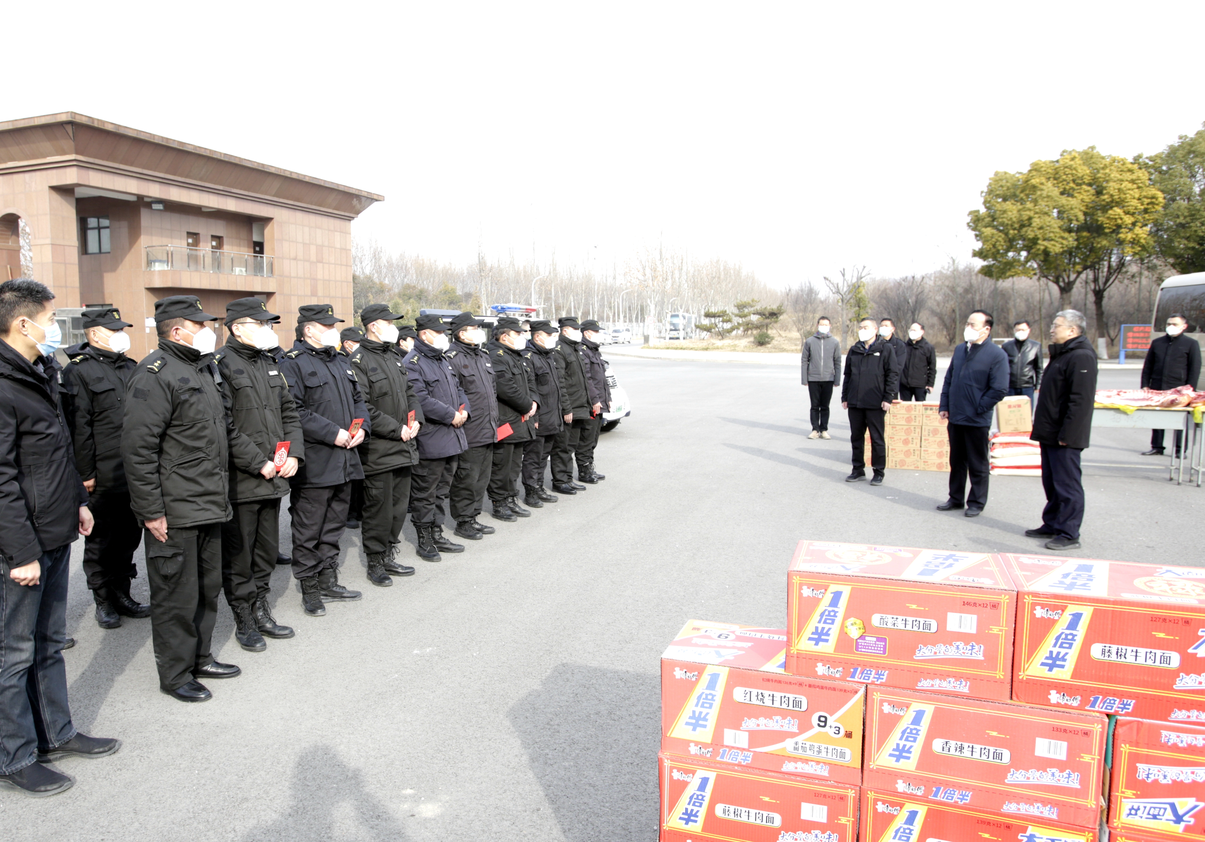 农历癸卯兔年春节即将到来之际,1月21日,农历腊月三十,校党委书记付强、校长刘代军、党委副书记余传杰一行带着对一线教职员工的关心和牵挂,看望慰问春节期间坚守工作岗位的门卫执勤、消防监控、食堂餐饮、宿舍管理等一线工作人员,向他们致以节日问候和新春祝福,希望大家再接再厉、尽职尽责,做好节日期间各项保障工作,确保全校教职工过上一个欢乐祥和的新春佳节。