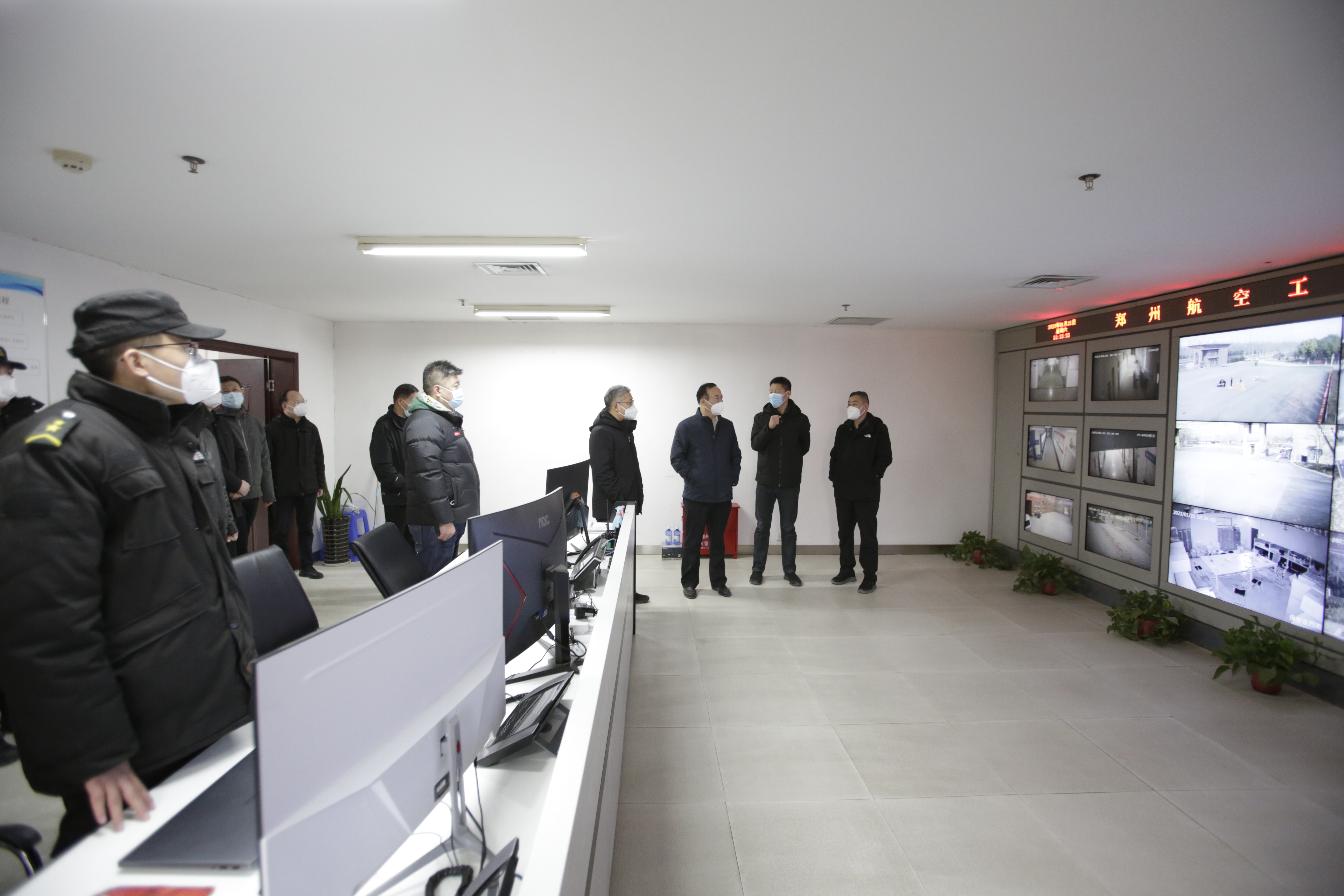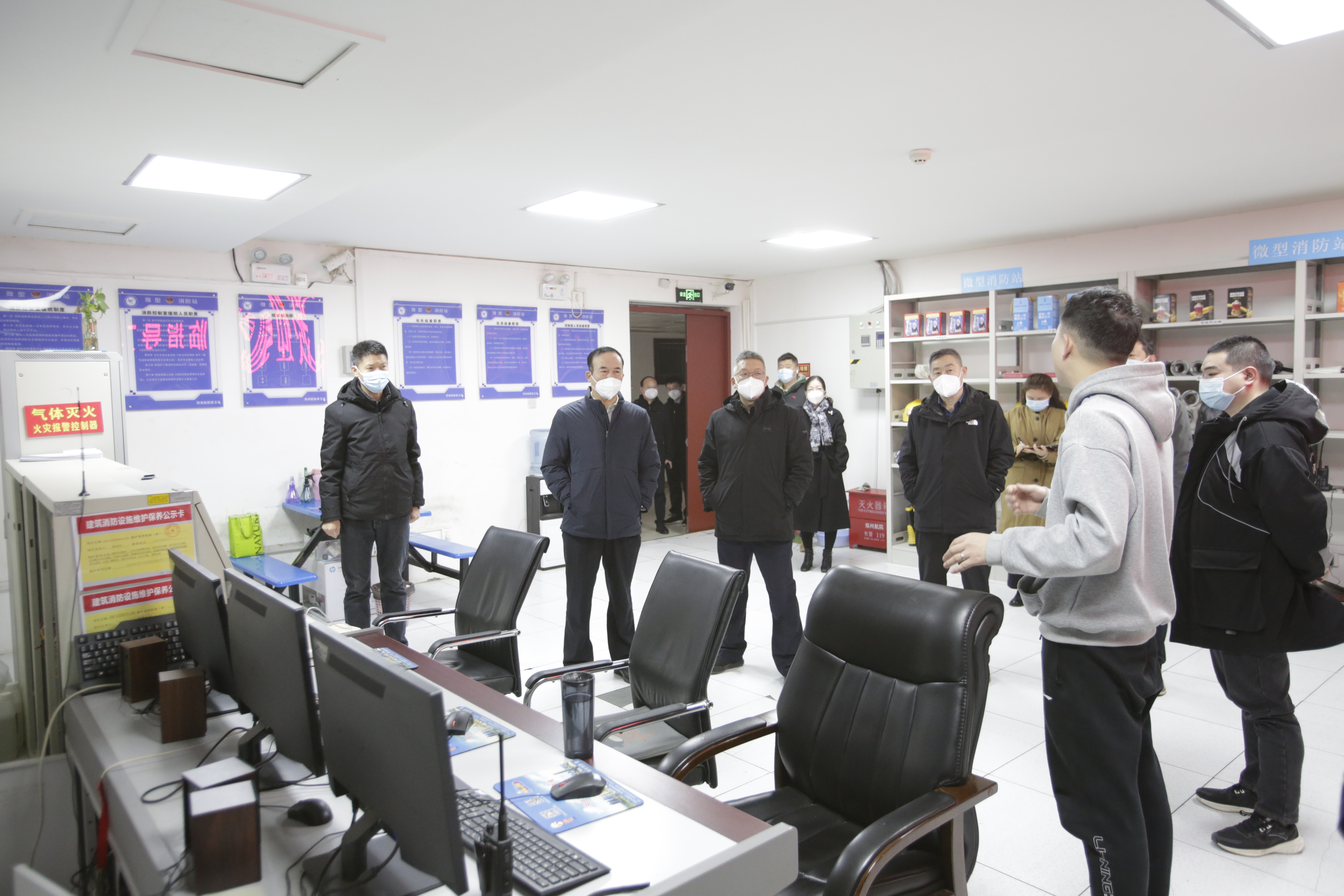 随后,校领导一行来到校园监控室和消防控制室。室内各种监控和中控系统运行正常,覆盖全校的900余个监控设备实施24小时无间隔作业,通过机控与人控、日常巡检与视频监控的有机结合,对学校火灾报警信息与设备运行状态信息实行远程集中监控。校领导代表全校3万名师生向坚守岗位的工作人员拜年,指出节日安全格外重要,越是到了假期,越要提高警惕,希望在岗值班人员要以对师生高度负责的态度,加强动态研判、监测预警、科学调度,落实24小时轮班值守制度,完善应急预案,及时解决各类突发情况,确保春节期间校园安全稳定。