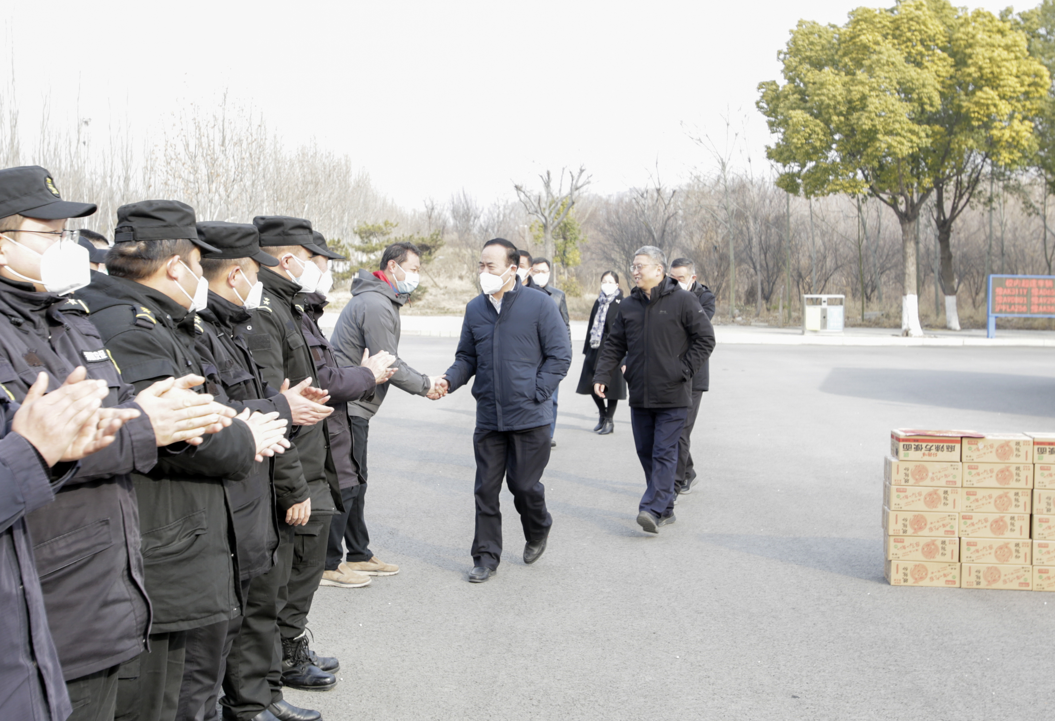 “新年好!”“给大家拜年了!”“你们辛苦了!”在西大门保卫值班处,校领导与执勤的安保人员一一握手,并仔细询问了“就地过年”安保人员的生活保障情况。付强、刘代军代表校党委、校行政向全体安保人员,尤其是春节期间仍然坚守一线的安保人员致以新春问候,对郑航安保一年来,特别是2022年校园疫情防控期间经受住抗击疫情的严峻考验,全力以赴战疫情、防风险、保安全,锤炼出过硬的工作作风,全力保障校园安全和教育教学的安然有序,为学校作出的突出贡献表示衷心感谢。“寒假期间,学校安保工作仍然非常繁重”,校领导再三叮嘱安保工作人员春节期间要加强值班备勤,强化治安防控,将校园安保工作做深做细做实。