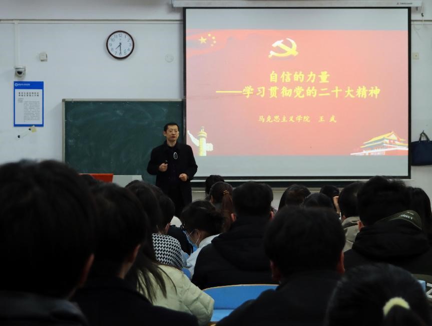 王武以《自信的力量》为题,从党的二十大报告原文入手,围绕大会的主题和党的百年奋斗历程、马克思主义的两个“行”、实现马克思主义的两个“结合”、中国优秀传统文化的“两创”、党的中心任务和中国式现代化五个方面诠释了自信的力量。