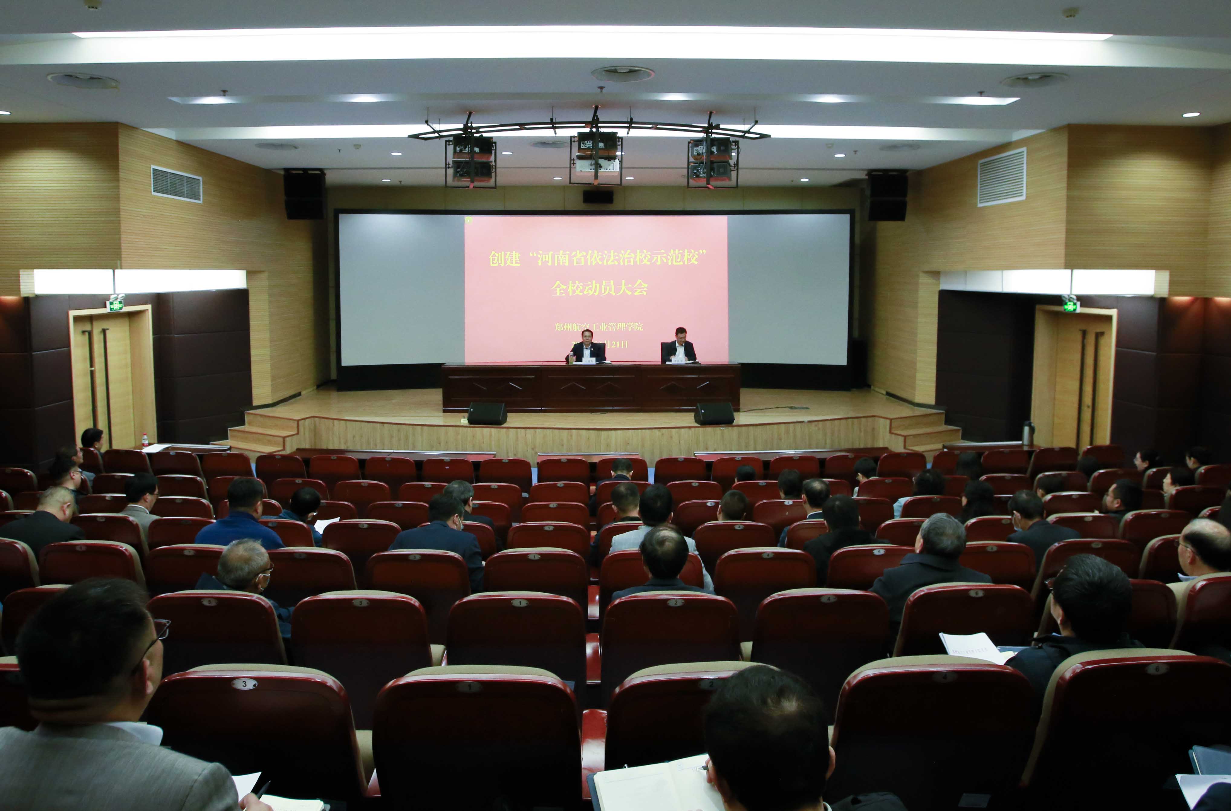 会议解读了《郑州航空工业管理学院创建“河南省依法治校示范校”实施方案》,对创建工作目标、组织领导、工作任务、实施步骤、工作要求和任务分解等作出具体说明。