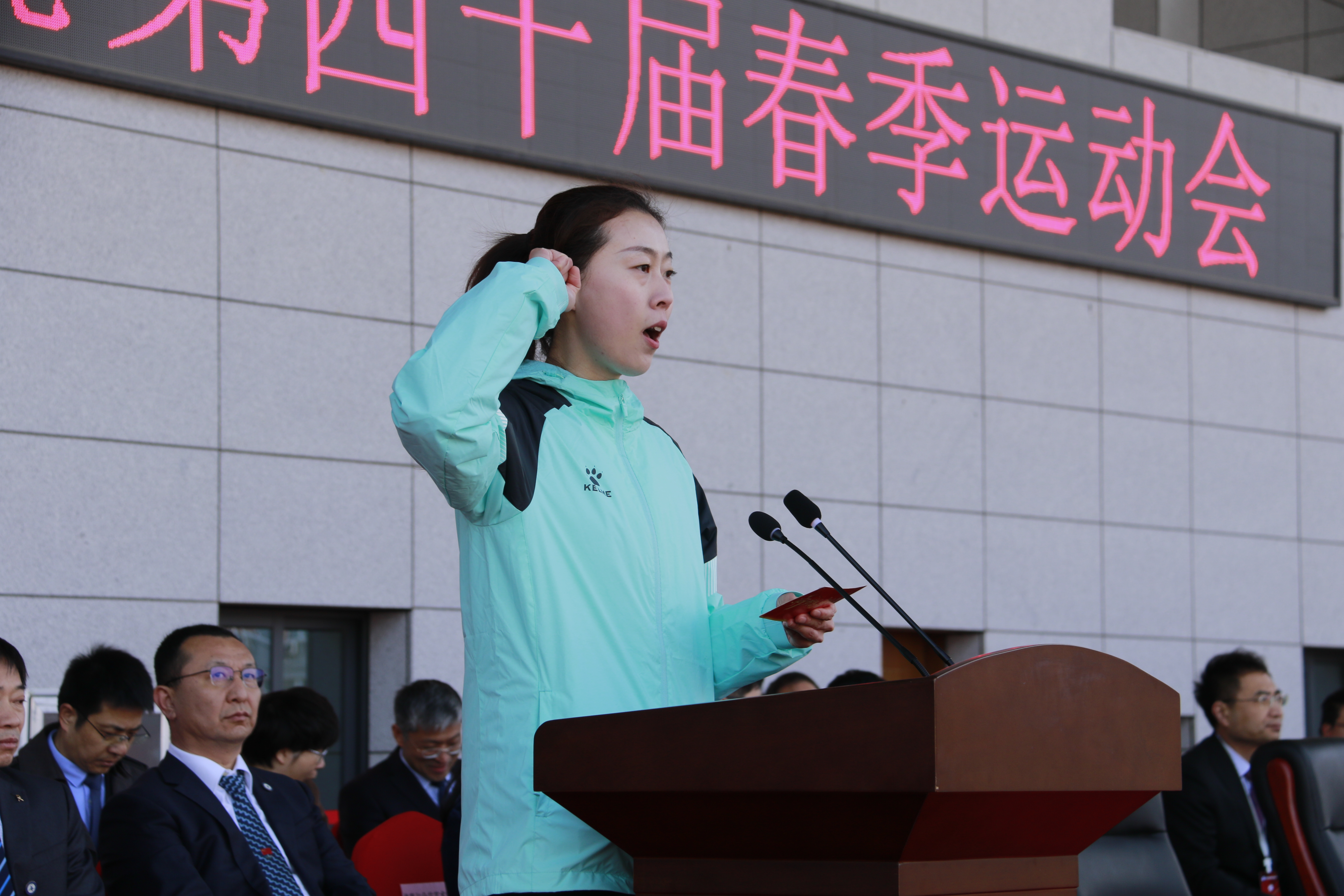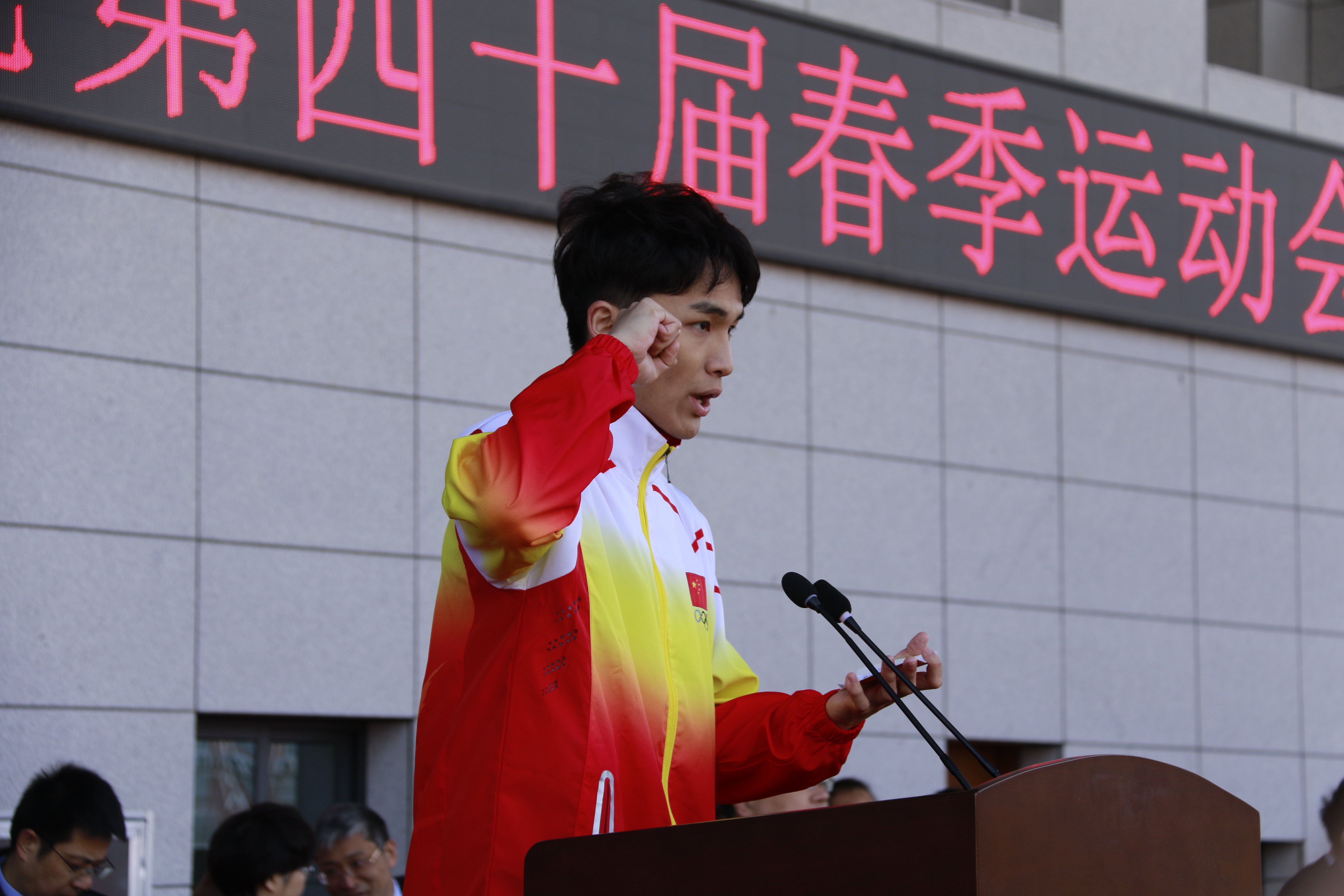 校党委书记付强宣布郑州航院第四十届春季运动会开幕。