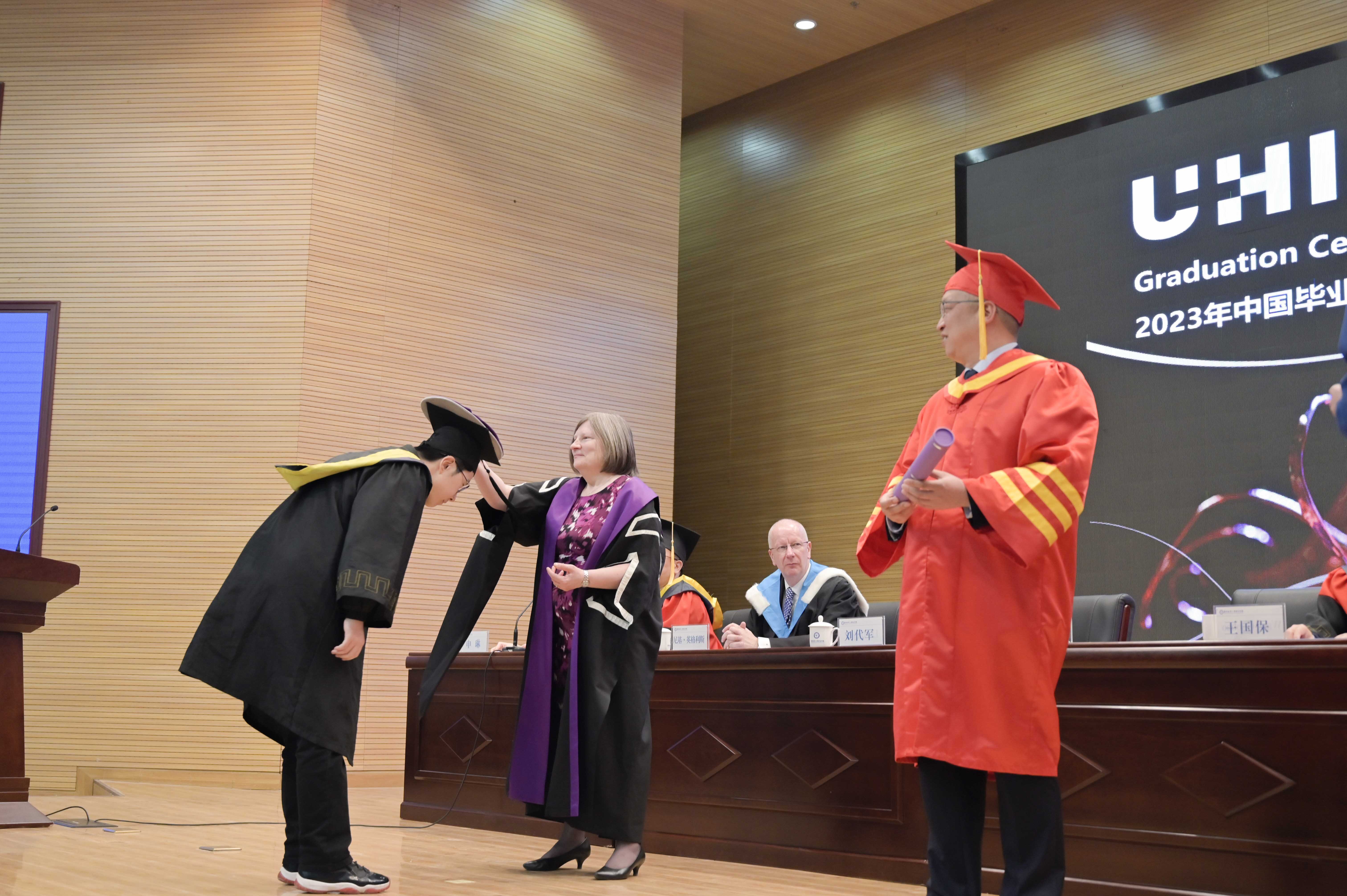 会见结束后,韦罗妮卡·林奇一行在图书馆第一报告厅与我校共同举办2023年英国高地与群岛大学毕业典礼。本次典礼是我校与英国高地与群岛大学合作办学以来的首届毕业典礼。