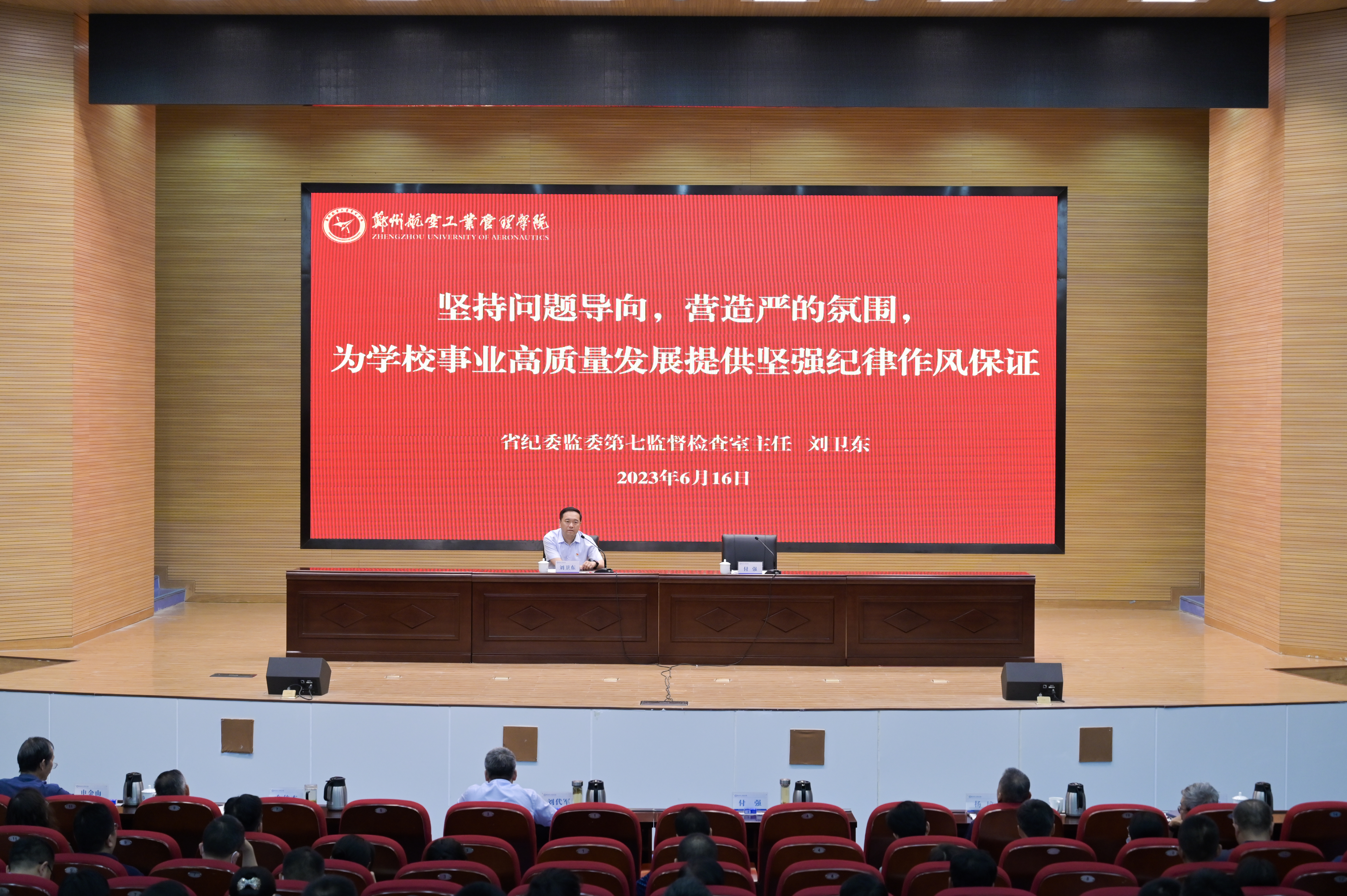 6月16日,校党委举行党委理论学习中心组(扩大)学习会,特邀河南省纪委监委第七监督检查室主任刘卫东作题为《坚持问题导向,营造严的氛围,为学校事业高质量发展提供坚强纪律作风保证》的全面从严治党、落实党风廉政建设专题报告。