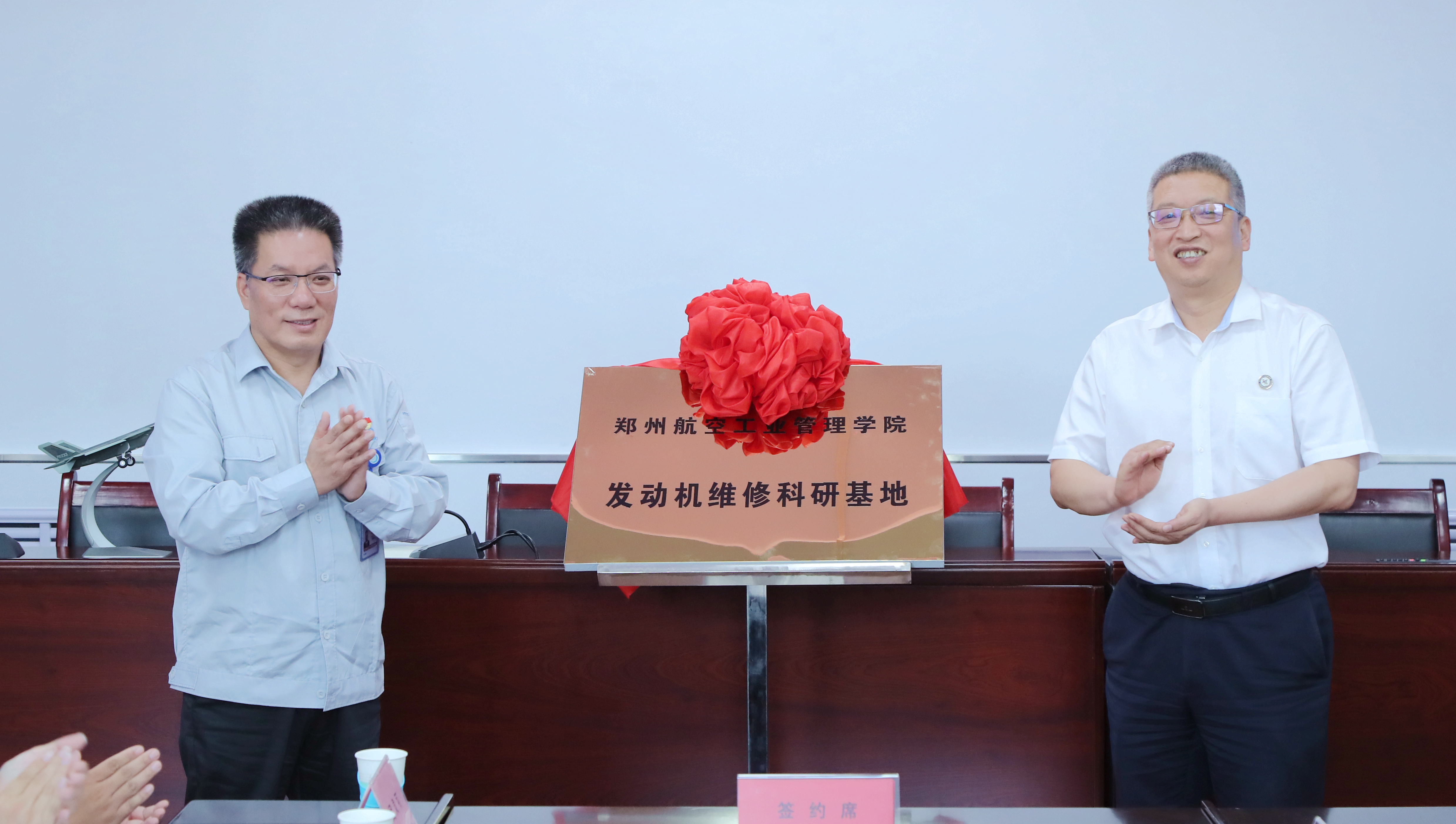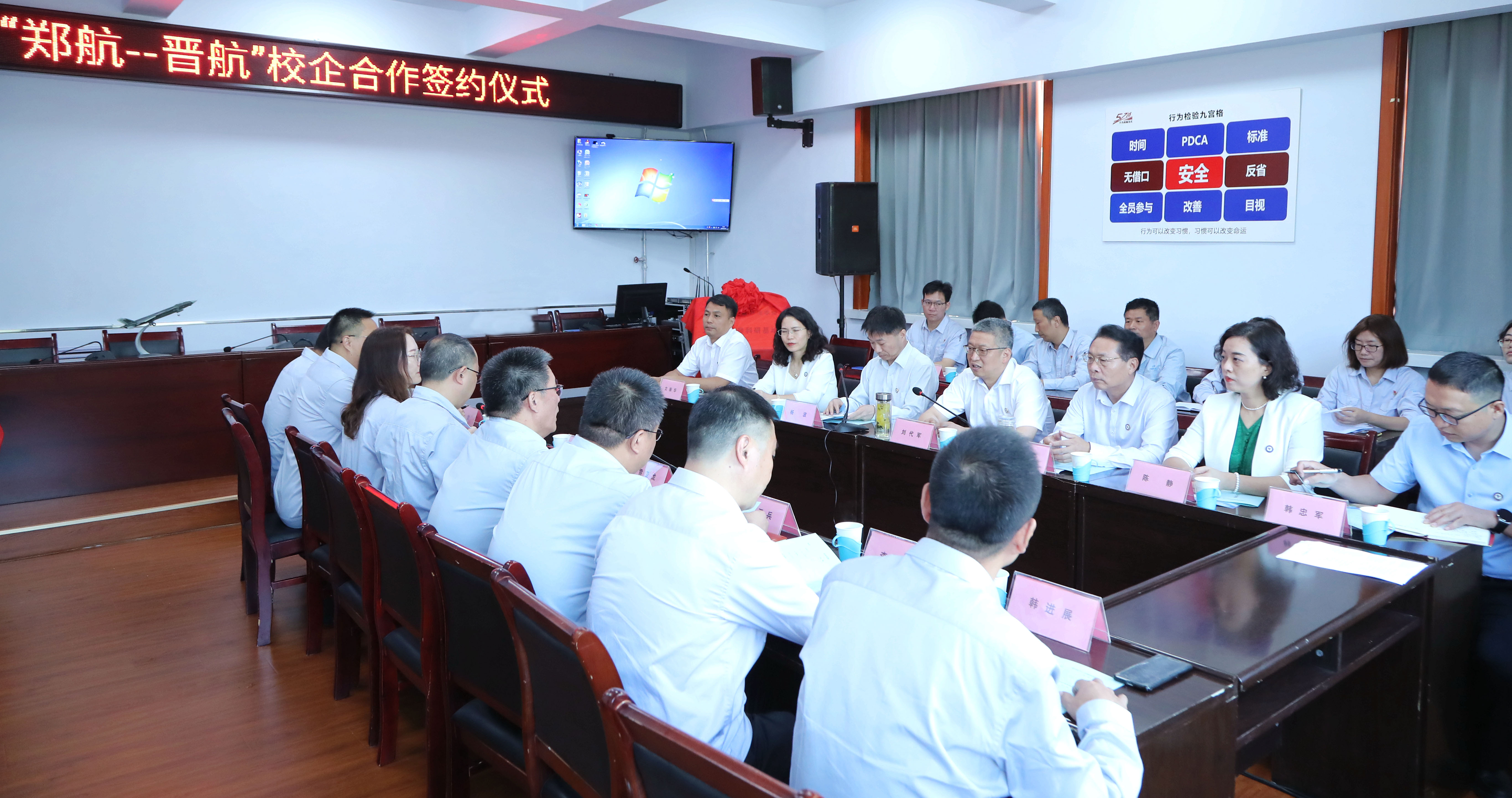 晋航相关部门负责人,在晋航工作的郑航校友代表,以及我校党委办公室、发展规划处、科技处、招生就业处、航空发动机学院主要负责人参加签约仪式。