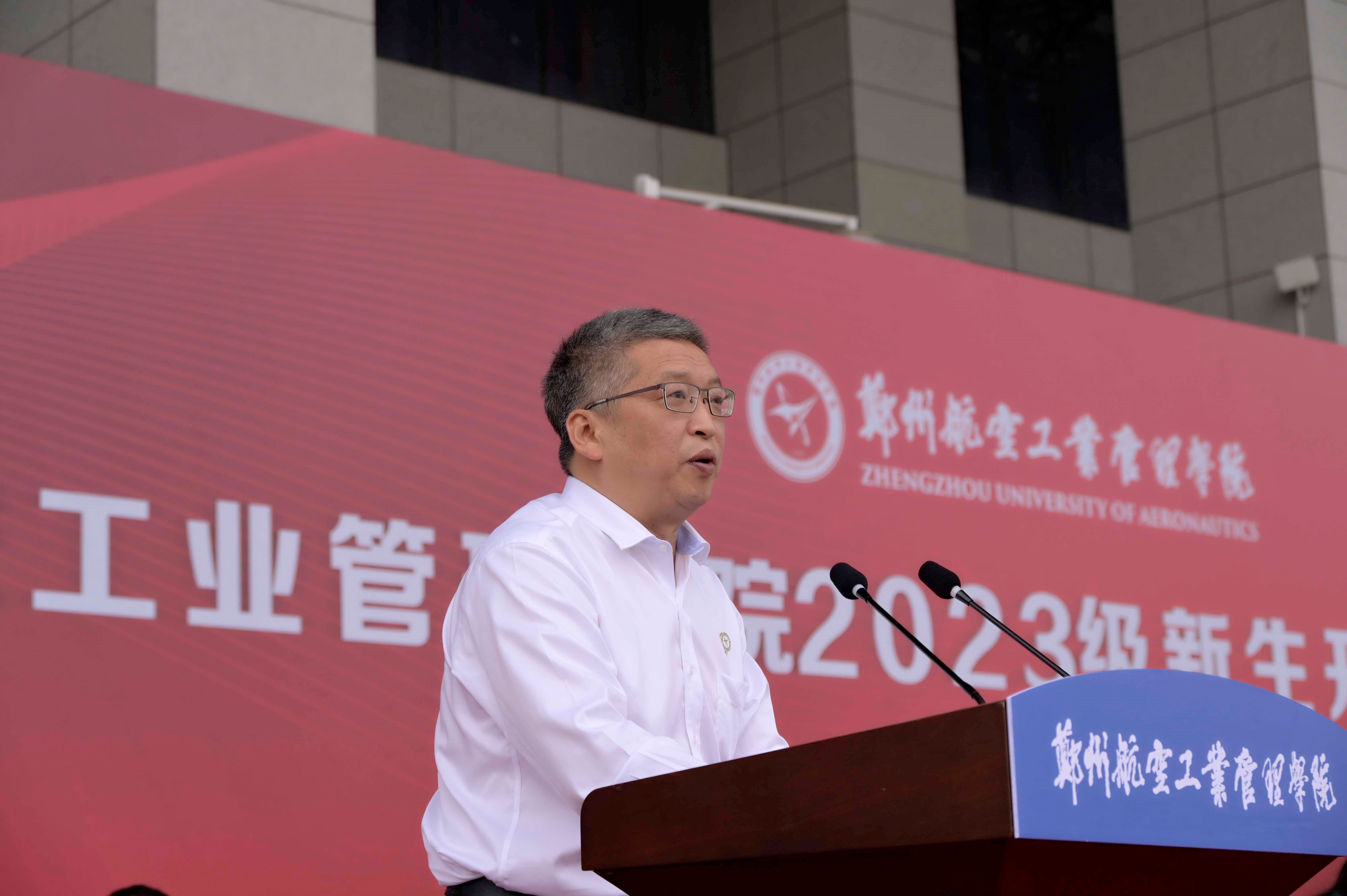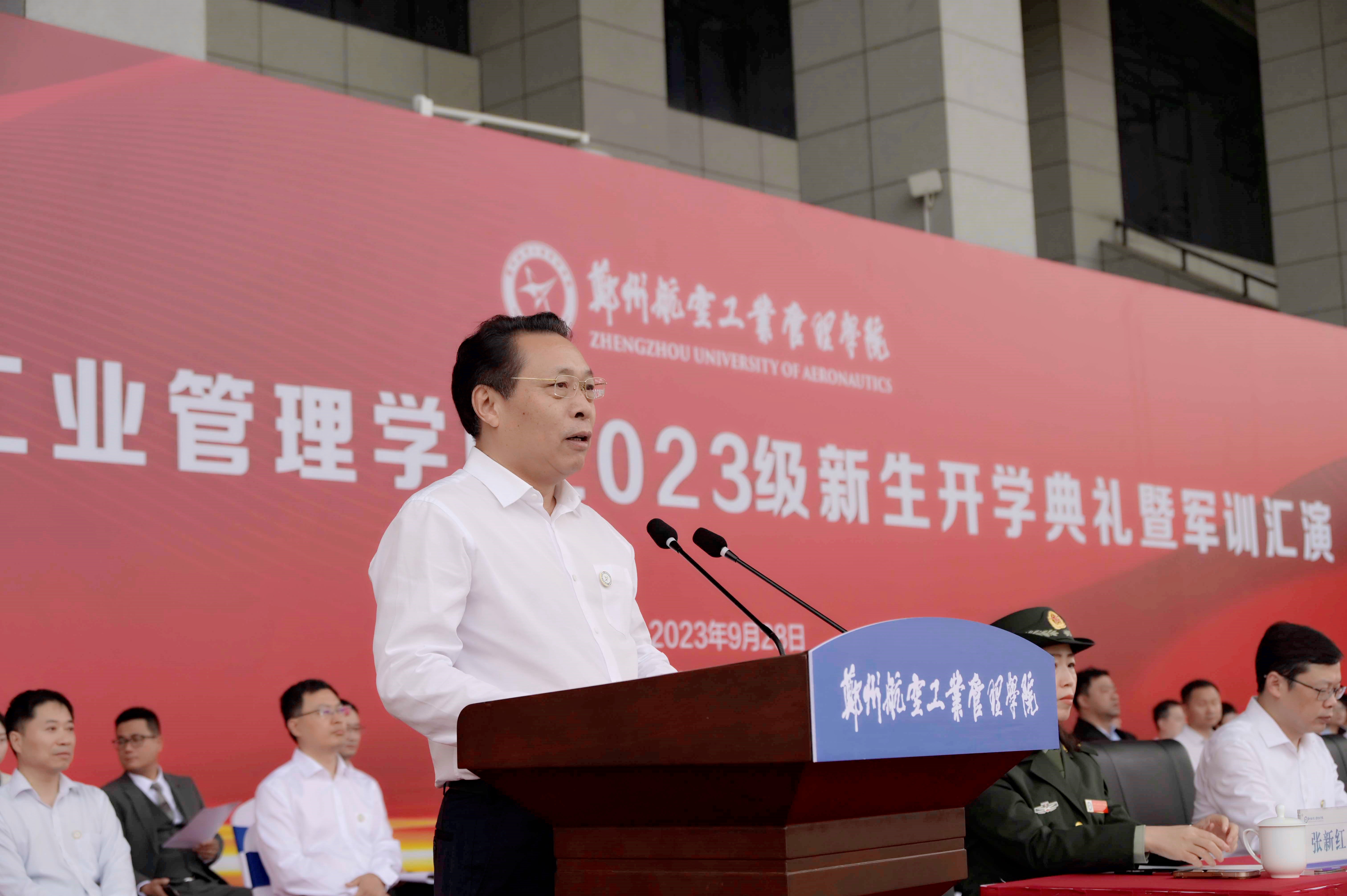 刘代军深情回顾学校74年来波澜壮阔的办学历程,总结学校近年来取得的丰硕办学成果,展望学校筹建高水平航空航天大学的壮美蓝图。刘代军寄语2023级新生,作为新一代郑航人,同学们要知校、爱校、荣校,增强对学校的认同感、归属感和自豪感,将爱国爱校之情转化为实际行动,为实现自己的人生理想而努力奋斗。