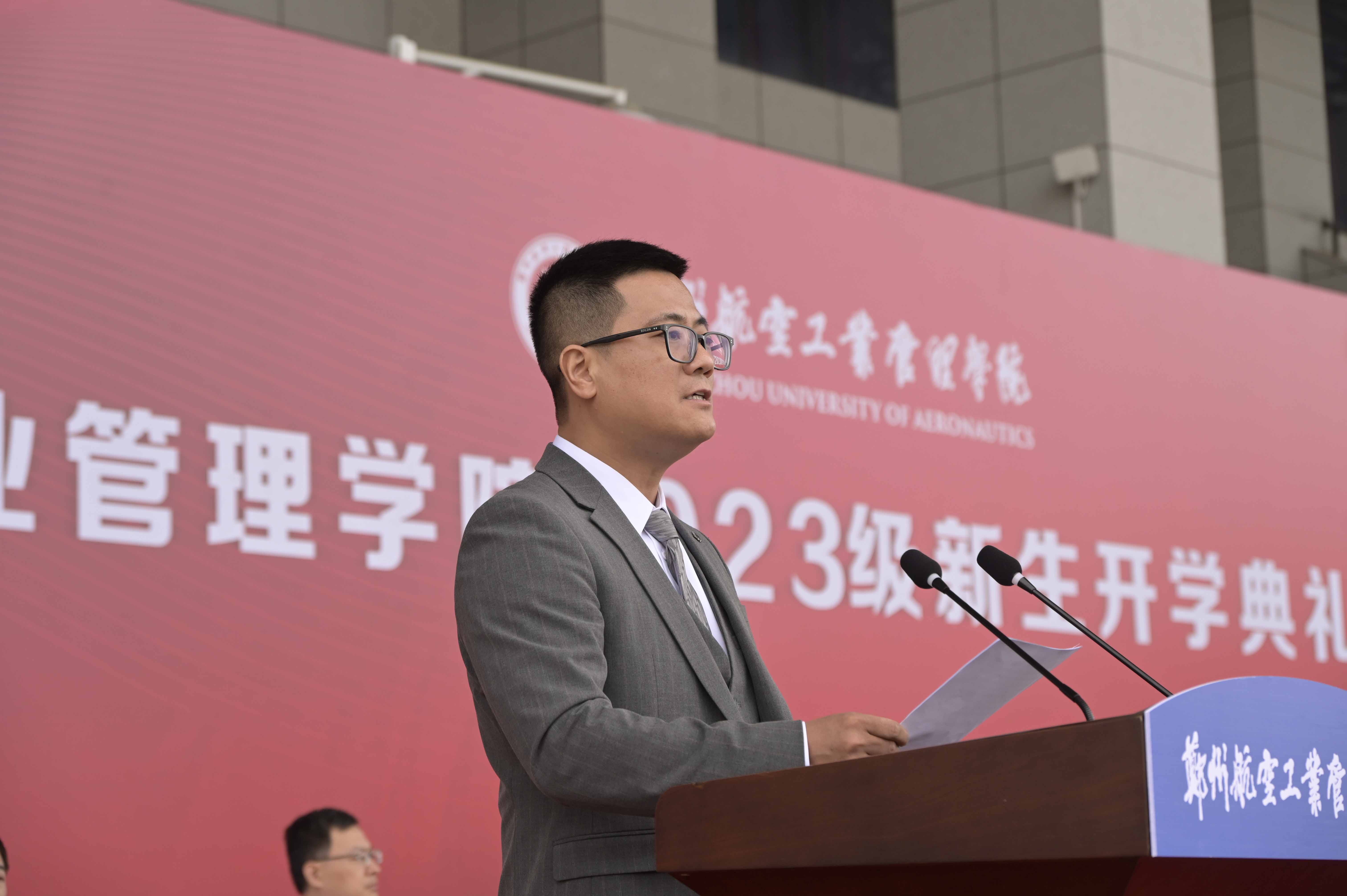 “青春虚度无所成,白首衔悲亦何及”,在校生代表任璐结合自身学习经历,认真思考“我来大学是为了什么?我的最终目标又是什么?”她寄语2023级新生珍惜时光、勇担使命,在强国之路上奋力奔跑,在复兴伟业中挺立潮头,跑出新一代郑航青年的好成绩。