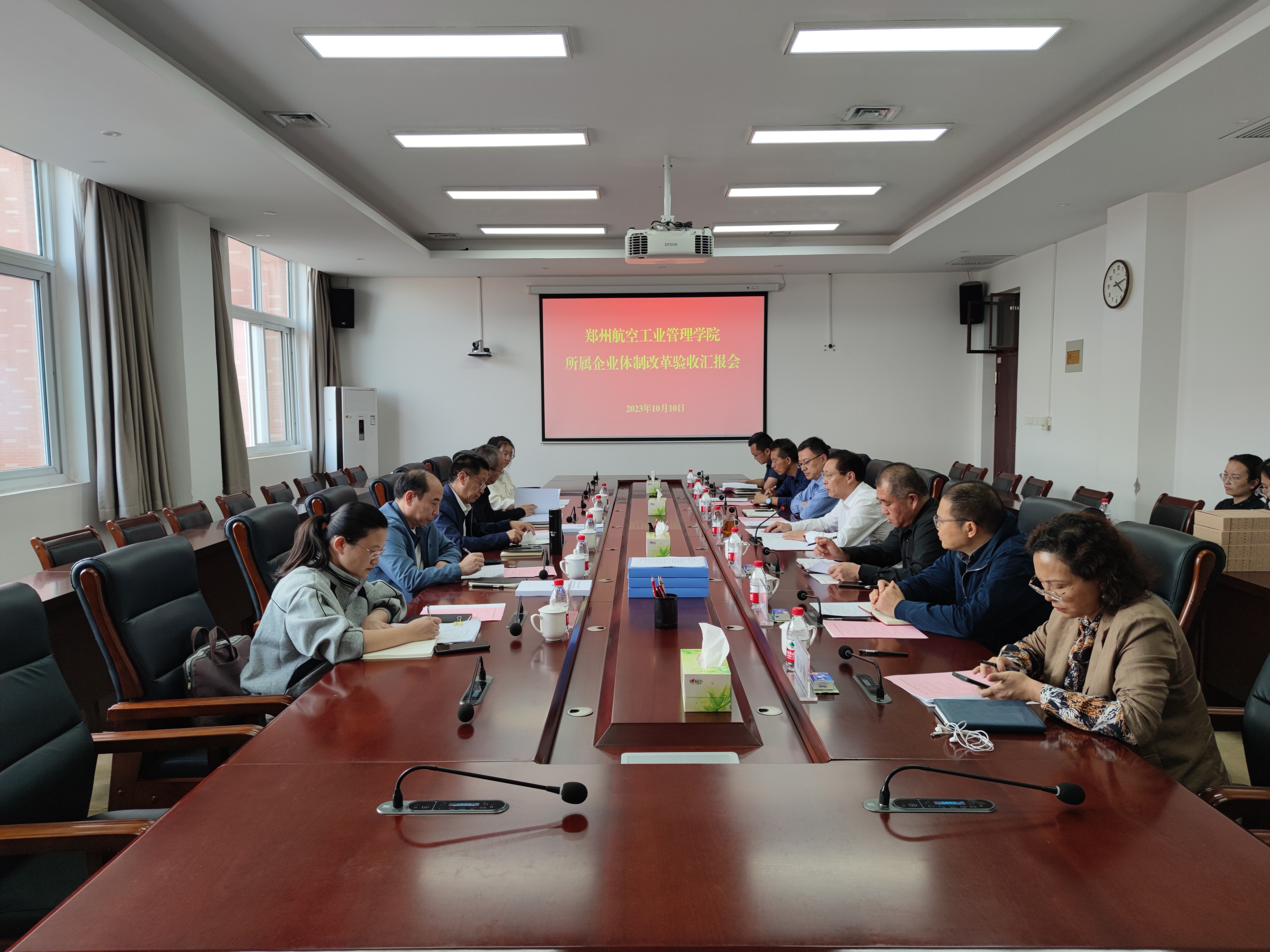 王继东代表学校简要介绍我校历史、办学条件、办学特色及目前贯彻落实河南省委、省政府决策部署,聚焦筹建高水平航空航天大学目标任务各项工作进展情况,重点说明校属企业体制改革工作。他表示,高校所属企业体制改革是推动高校所属企业清理规范、提质增效、推动高校聚焦教学科研主业、促进高校内涵式发展以及办好中国特色社会主义大学的重要举措。我校高度重视此项工作,按照省教育厅、省财政厅相关要求扎实开展工作,成立校属企业体制改革领导小组和领导小组办公室,科学制定改革方案,全力推进改革进程,如期完成改革任务。学校将以此次验收工作为契机,巩固改革成果,进一步推动学校所属企业提质增效,确保国有资产保值增值。