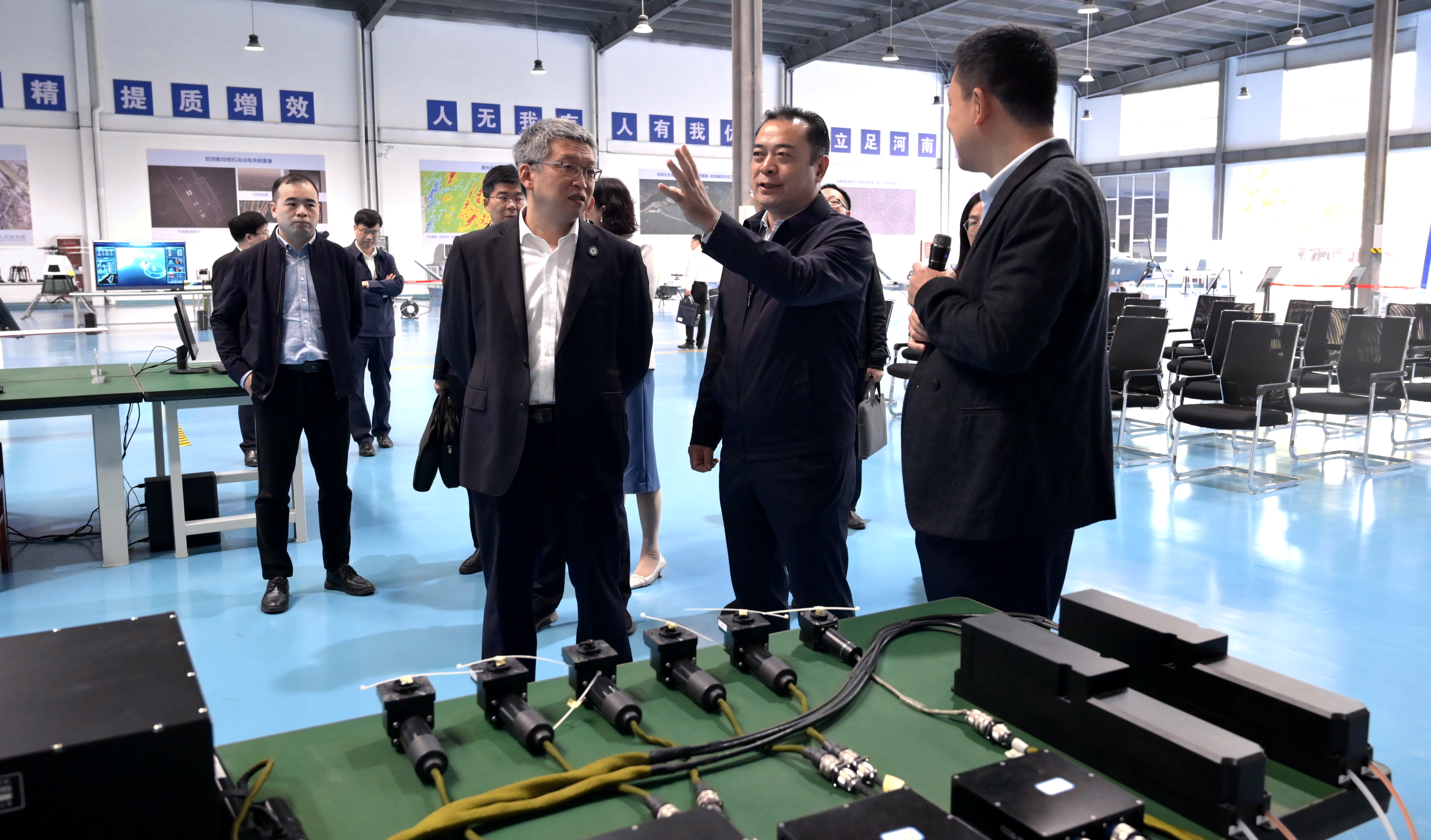 张锐、宋克兴一行深入调研河南省通用航空技术重点实验室无人机研究院的科学研究与社会服务情况,认真听取我校在无人系统领域产品研发、产教融合等方面汇报,详细了解河南省航空材料与应用技术重点实验室在材料学科领域的科学研究和人才培养方面取得的新成果,以及航空发动机学院的科学研究平台建设和项目开展情况。