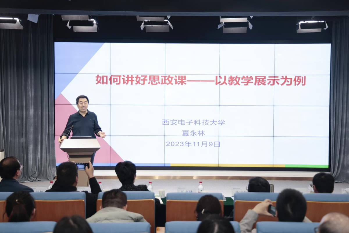 西安电子科技大学教授夏永林聚焦“如何讲好思政课、如何做好竞赛讲课”的会议主题,从问题缘起、成因对策、基本素养三个方面进行系统讲解。在辅导答疑环节,夏永林现场解答骨干教师的疑问,并提出具有针对性、实用性的指导建议。