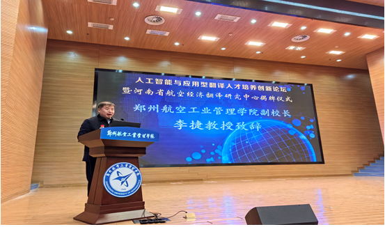 李捷在致辞中指出,郑州航院建校74年来,坚持面向航空航天产业、面向区域经济社会发展,逐步形成在航空航天工业管理和技术应用研究领域的较强优势。目前,学校深入贯彻落实河南省委、省政府筹建郑州航空航天大学重大决策部署,立足扎根中原大地办大学,全面提高办学质量和科研水平,不断融入国家战略、区域发展和行业进步,着力提升学校服务航空航天产业和区域经济发展能力。其中,外国语学院紧跟学校快速发展步伐,学科建设成效明显,航空特色日益彰显,人才培养质量逐年提高。李捷希望,以此次论坛为契机,进一步加快推动学校翻译专业和翻译专业硕士学位点发展建设,进一步提高应用型翻译人才培养质量,为新时代讲好河南故事、传播中国声音、建构中国话语贡献郑航智慧。