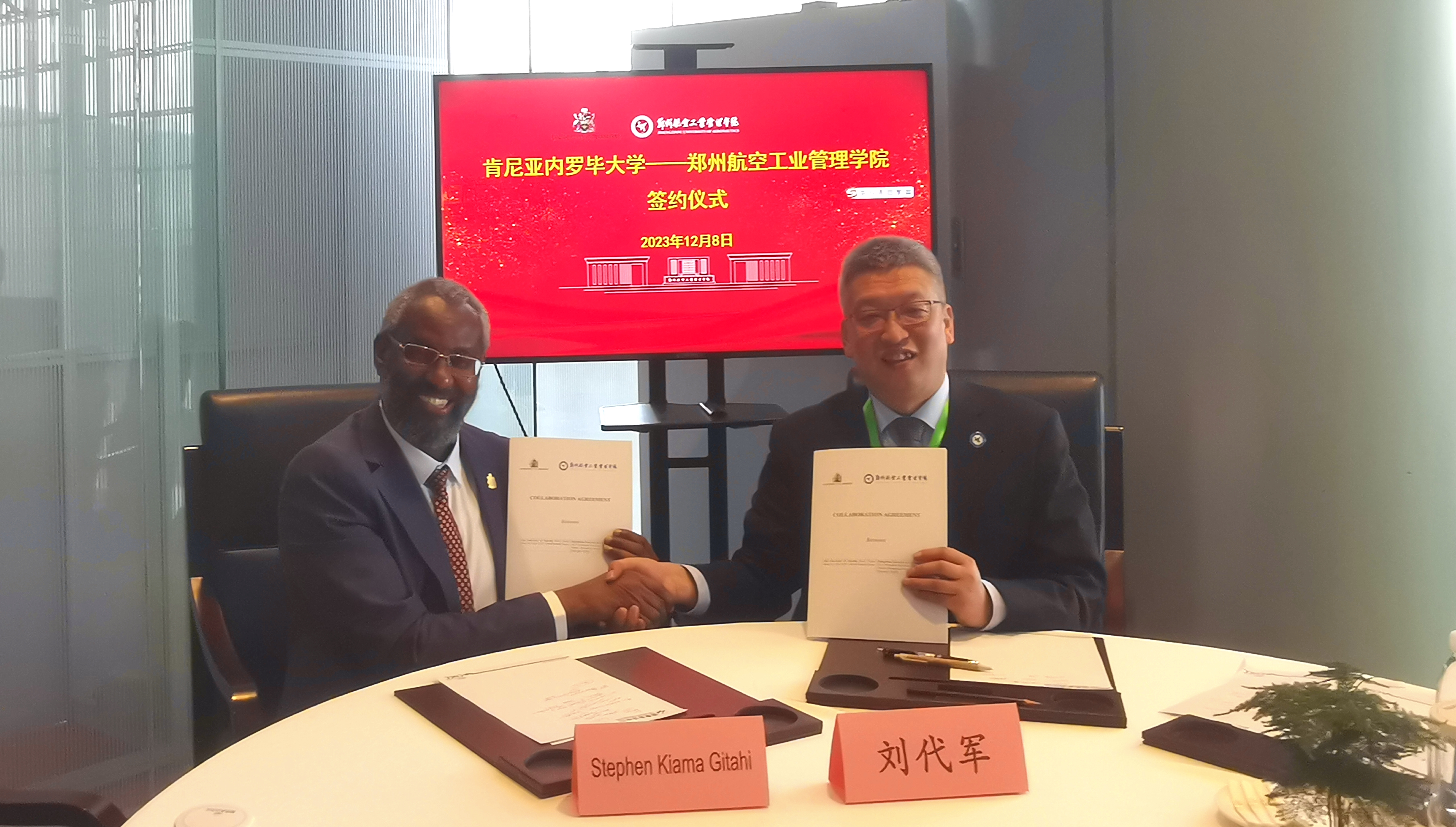 大会期间,刘代军代表学校和肯尼亚内罗毕大学校长斯蒂芬·齐亚玛·戈尔希签署合作框架协议,标志着两校即将在师生互访、人文交流、教学和科研等方面开展实质性合作。