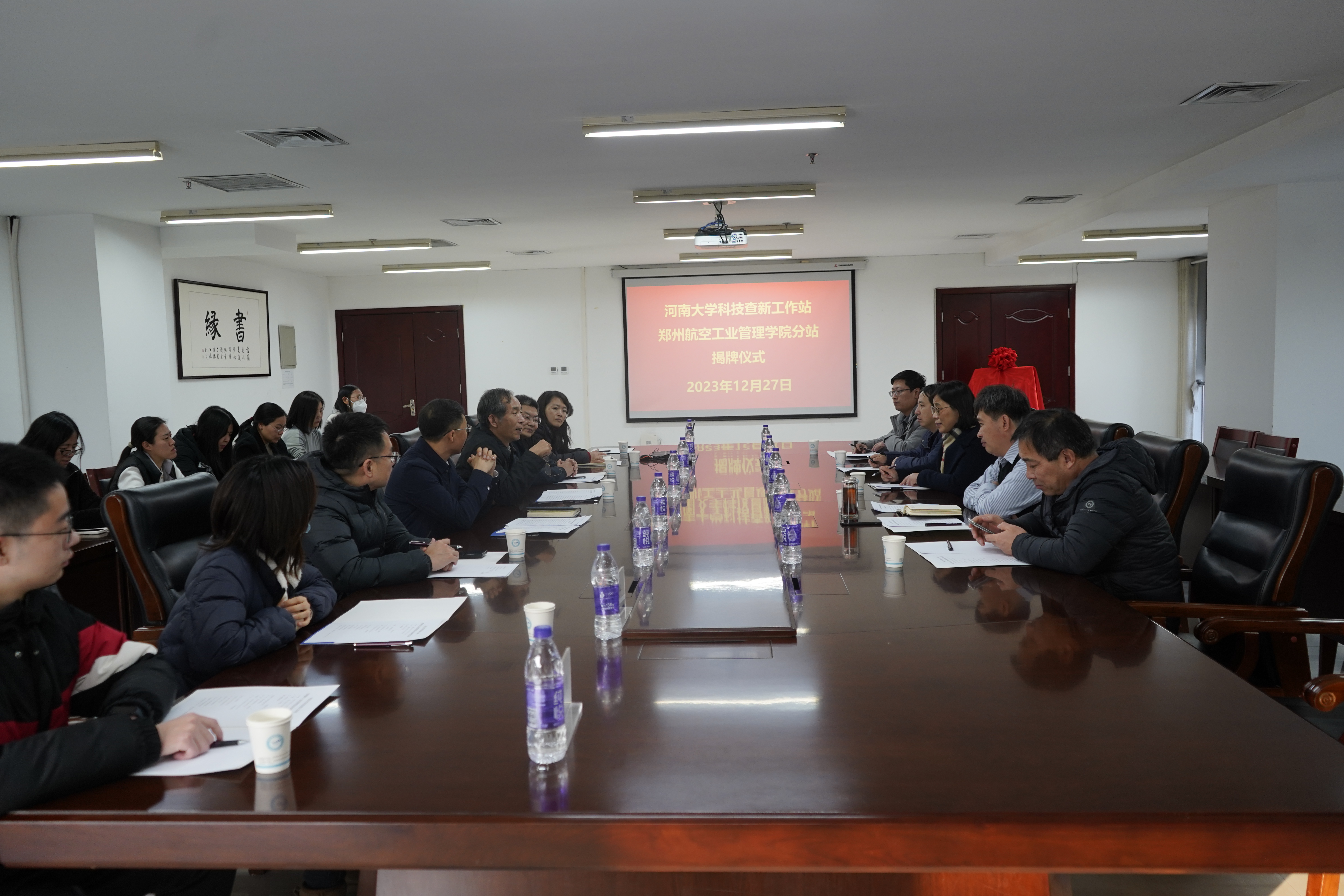 12月27日,“河南大学科技查新工作站郑州航空工业管理学院分站”揭牌仪式在我校举行。副校长申金山、河南大学图书馆党委书记马晓静、馆长李恒、副馆长季超出席仪式。