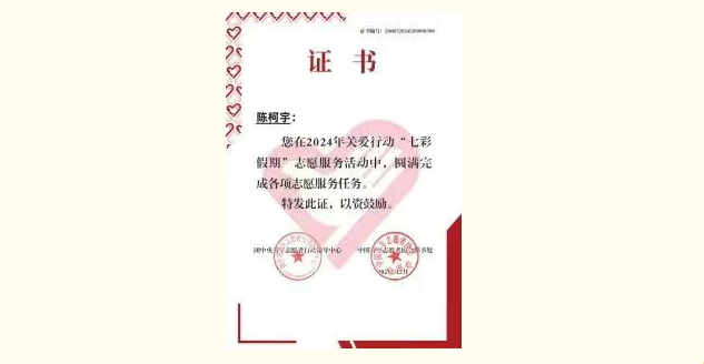 他始终牢记全心全意为人民服务的宗旨,积极投身社会实践与志愿服务。2023年暑期作为“饮水思源”省级实践团队骨干,深入南水北调中线工程一线调研,撰写近2万字调研报告,为水资源可持续发展建言献策;多次参与校园疫情防控、迎新引导等志愿工作,以实际行动践行初心使命。