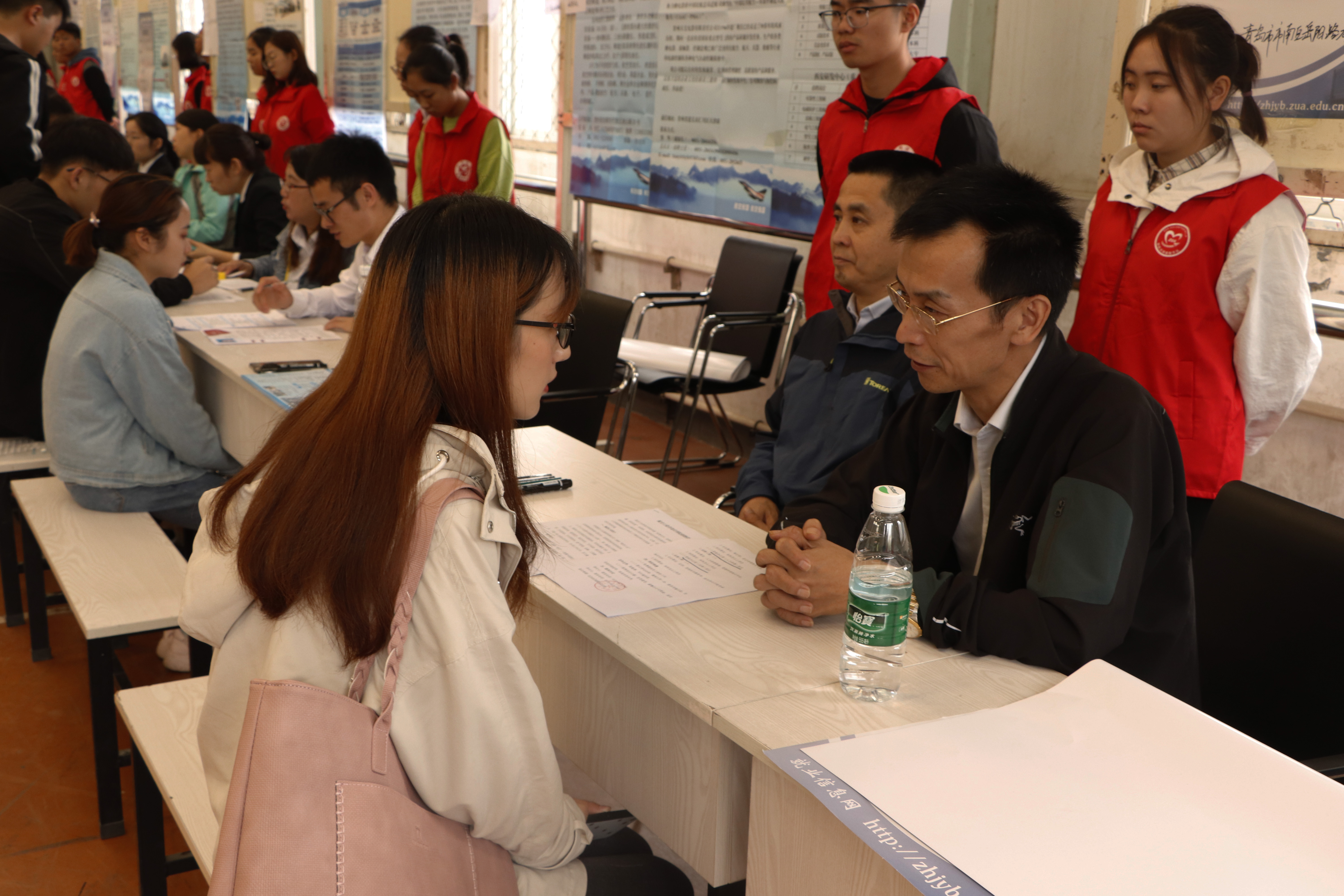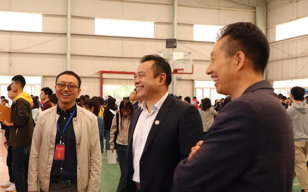 副院长张锐来到招聘会现场,与用人单位、招生就业处和应聘学生进行了面对面交流,了解用人单位岗位需求和学生求职意向。