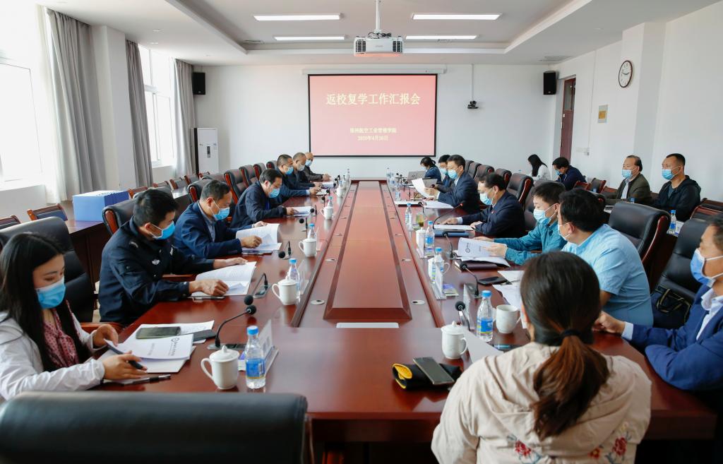 赵健从防控措施部署、防控责任明确、防控人员组织、防控信息排查、防控制度落实、防控物资贮备、防控设施完善、应急预案准备、防控风险评估等九个方面,详细介绍了学校落实《河南省教育系统疫情防控“九个到位”指导标准》和返校复学各项准备工作的开展情况,并对下一步的工作措施进行了汇报。