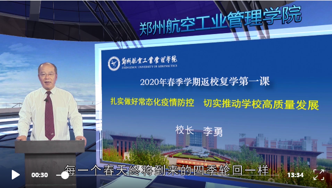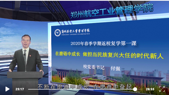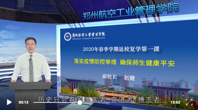 学校还组织返校学生观看了由河南省教育厅统一录制的全省高校“返校复学第一课”微课视频和特别录制的“河南省新冠肺炎疫情防控优秀大学生群体”成员、我校智能工程学院学生赵文赐先进事迹介绍等专题视频。