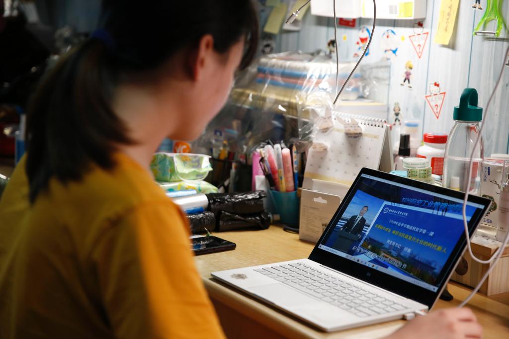 各学院、各班级按计划扎实上好“返校复学第一课”。智能工程学院特别邀请大一学生赵文赐和同学们进行连线互动,与榜样面对面,激发同学们向赵文赐等优秀大学生学习的热情。主题班会最后,老师和同学们隔着屏幕齐唱《我的祖国》《歌唱祖国》等爱国歌曲,用歌声传递奋进力量,表达了青年坚定理想信念,练就过硬本领,继续为祖国奉献青春力量,为实现中华民族伟大复兴努力奋斗的心声。