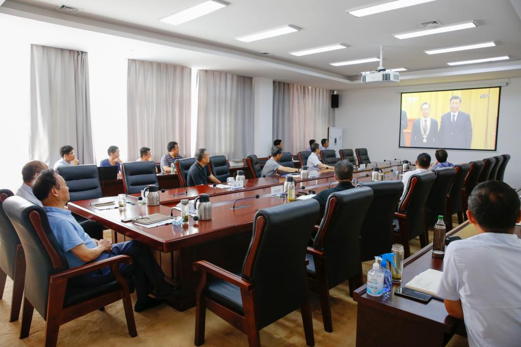 上午10时,全体在校校领导在综合楼427集中收看大会现场直播,认真聆听习近平总书记重要讲话精神。党委书记付强在直播结束后谈到,习近平总书记的重要讲话回顾总结了全国人民在党中央坚强领导下抗击新冠肺炎疫情的伟大实践、重要经验和深刻启示。在以习近平同志为核心的党中央坚强领导下,全国疫情防控阻击战取得了重大战略成果,彰显了中国共产党集中统一领导和中国特色社会主义制度的显著优势,是中华民族伟大精神的鲜活写照。