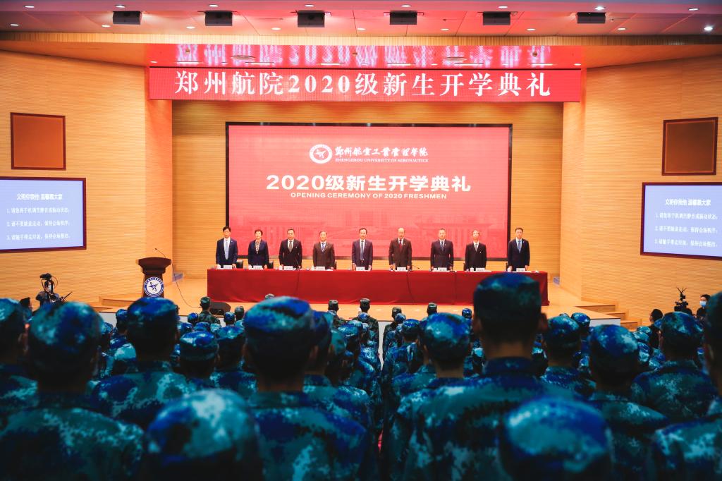 典礼上,校领导为新生代表佩戴郑航校徽,来自全国各地的8460名新生大学生活正式开启。典礼在雄壮的校歌合唱声中结束。