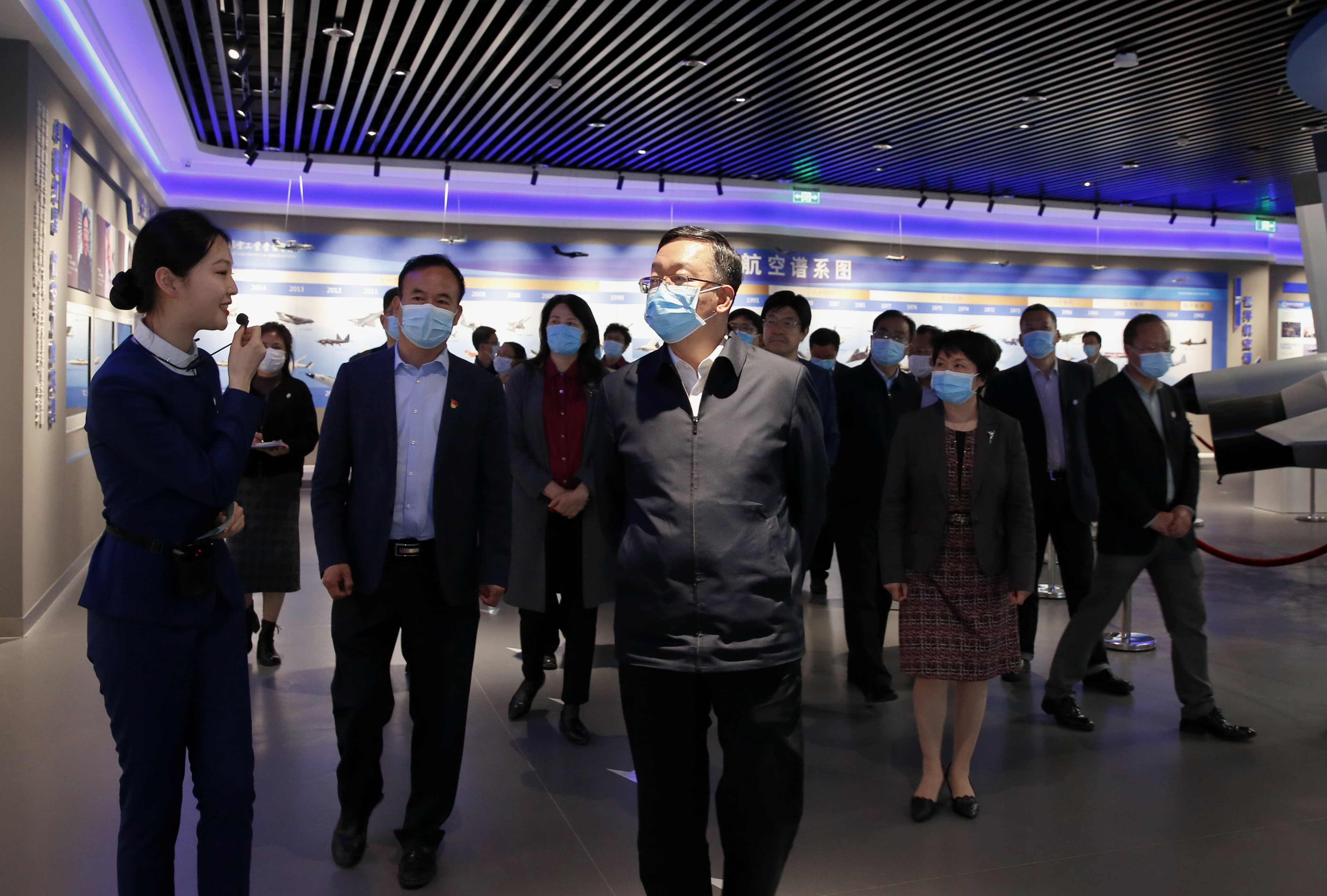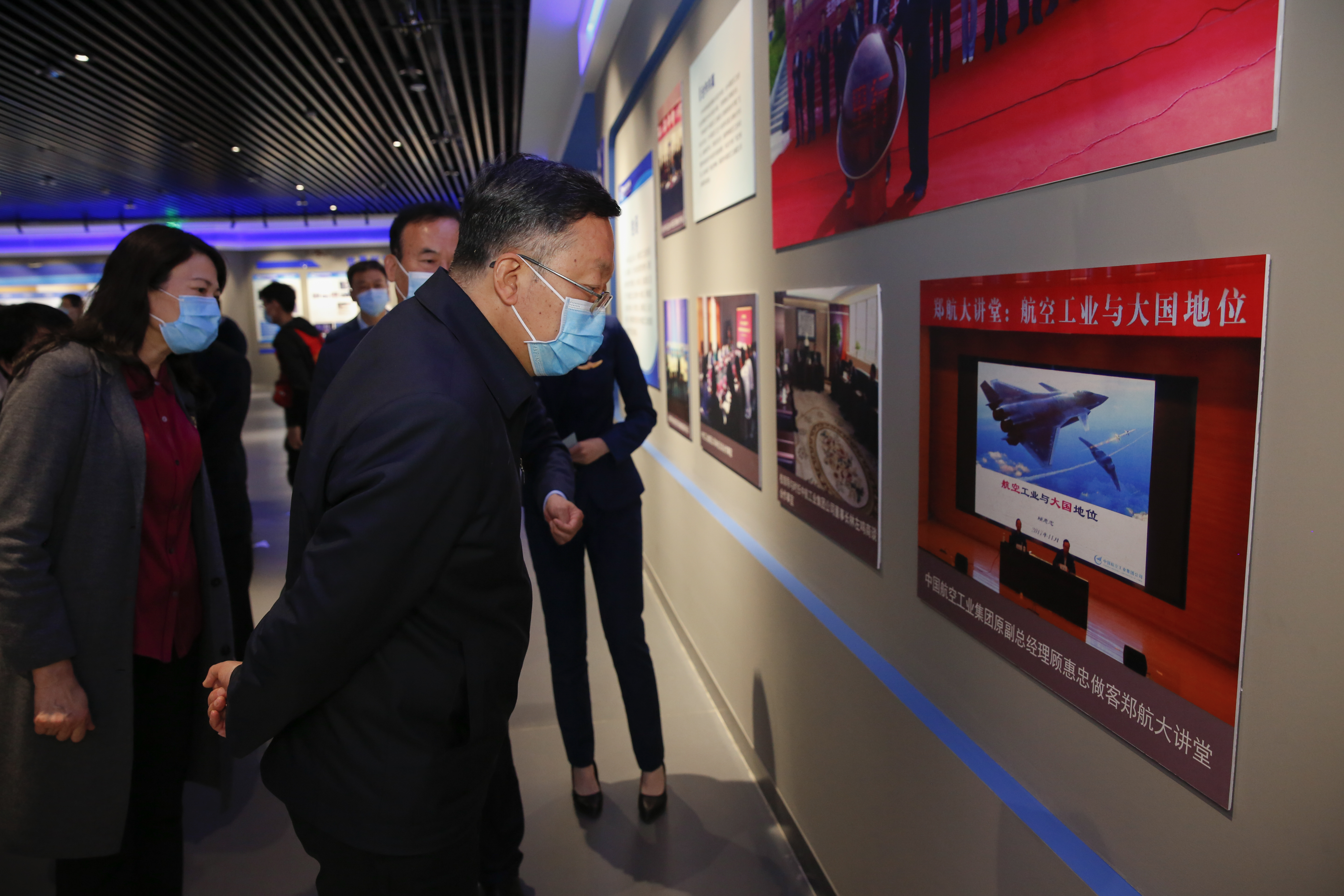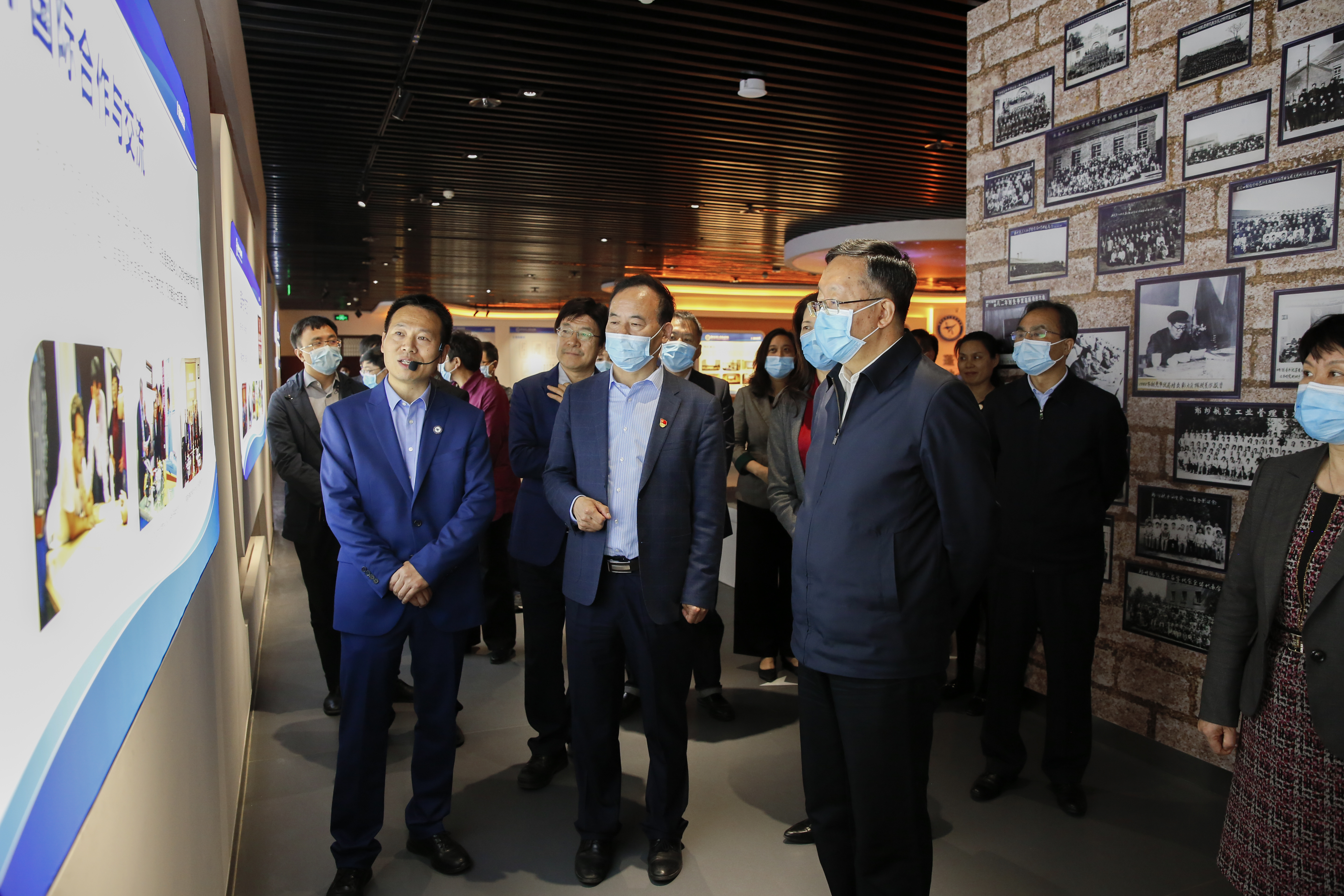 在航空文化馆,田学军一行详细了解世界航空发展史、中国航空工业发展史以及郑州航院的校史校情。校党委书记付强对学校近年来围绕立德树人根本任务,贯彻落实意识形态工作责任制情况进行了汇报。田学军指出,高校守好意识形态工作前沿阵地的当务之急是要通过健全责任体系、狠抓关键环节,提升意识形态工作责任制的落实水平,巩固马克思主义在高校意识形态领域的指导地位,着力防范化解思想阵地存在的风险与挑战。